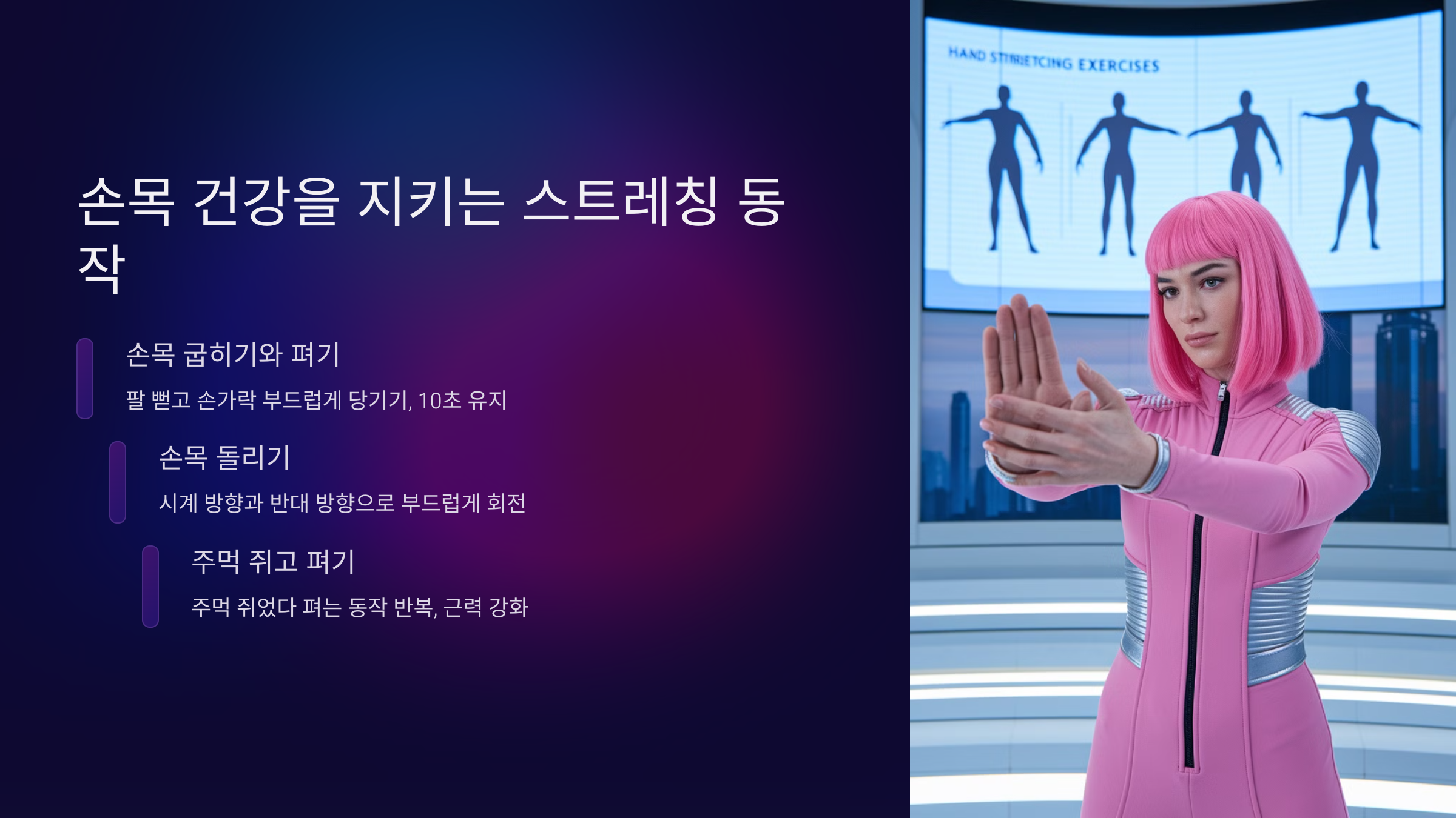 이러한 스트레칭을 하루에 2~3번씩 꾸준히 실천하면 손목 건강을 지키는 데 큰 도움이 될 거예요.