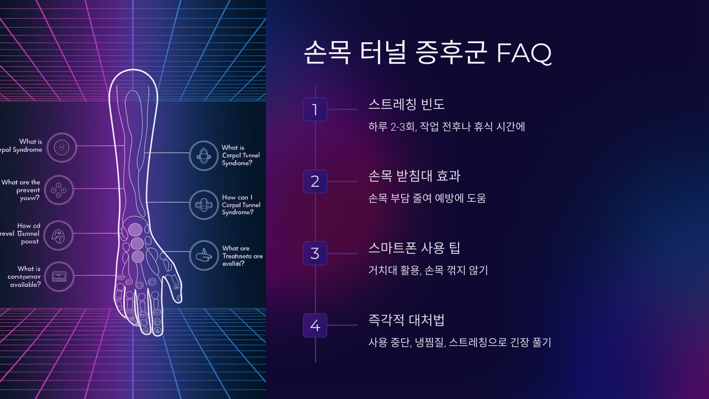 일상적인 습관을 조금씩 바꿔 나가면 손목 터널 증후군을 예방하는 데 큰 도움이 될 거예요.