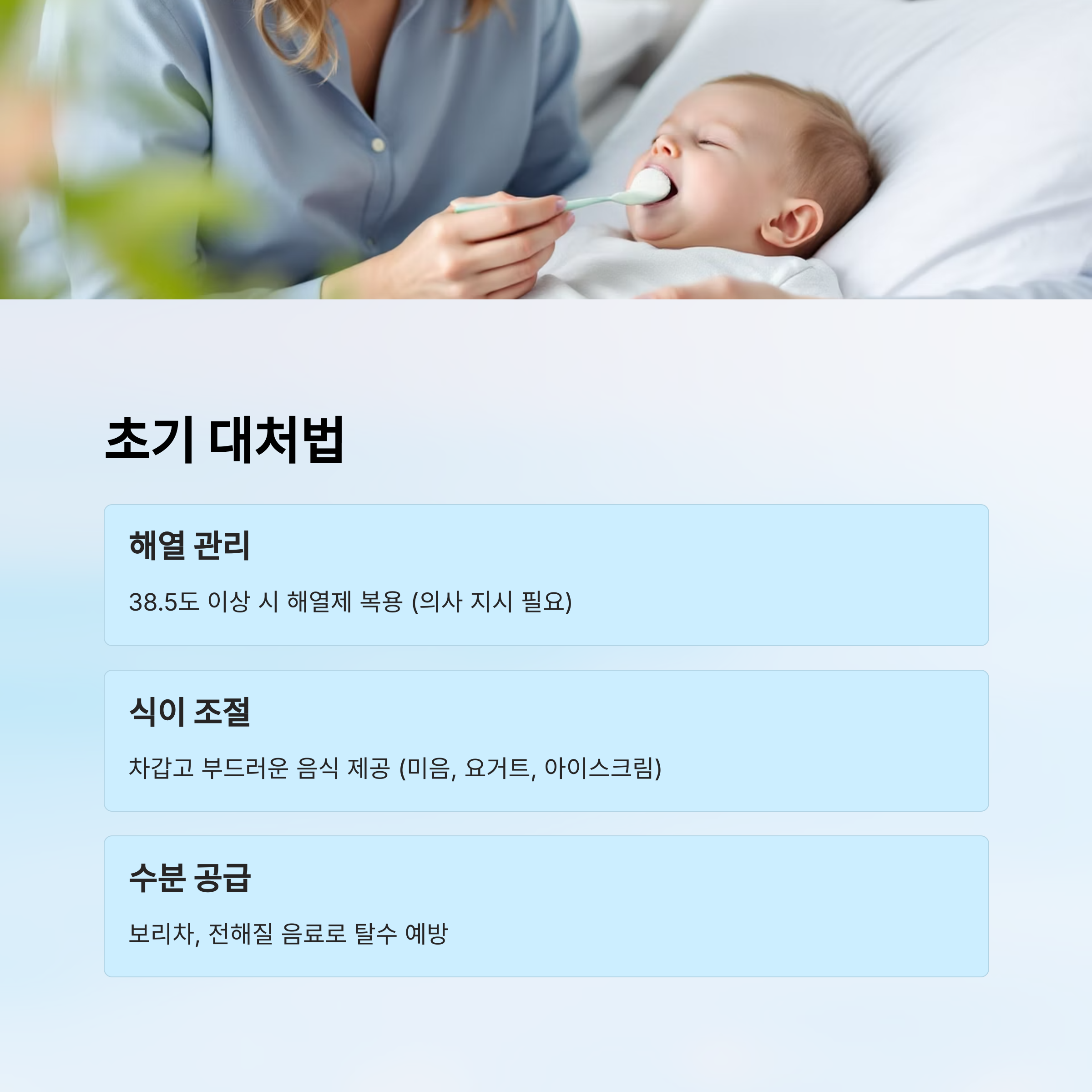 초기 대처만 잘 해도 회복이 훨씬 빨라져요. 약보다는 충분한 수면, 청결한 환경, 부드러운 음식, 그리고 아이의 기분을 살펴주는 것이 가장 중요한 치료예요. 엄마 아빠의 세심한 관심이 최고의 약이랍니다. ❤️