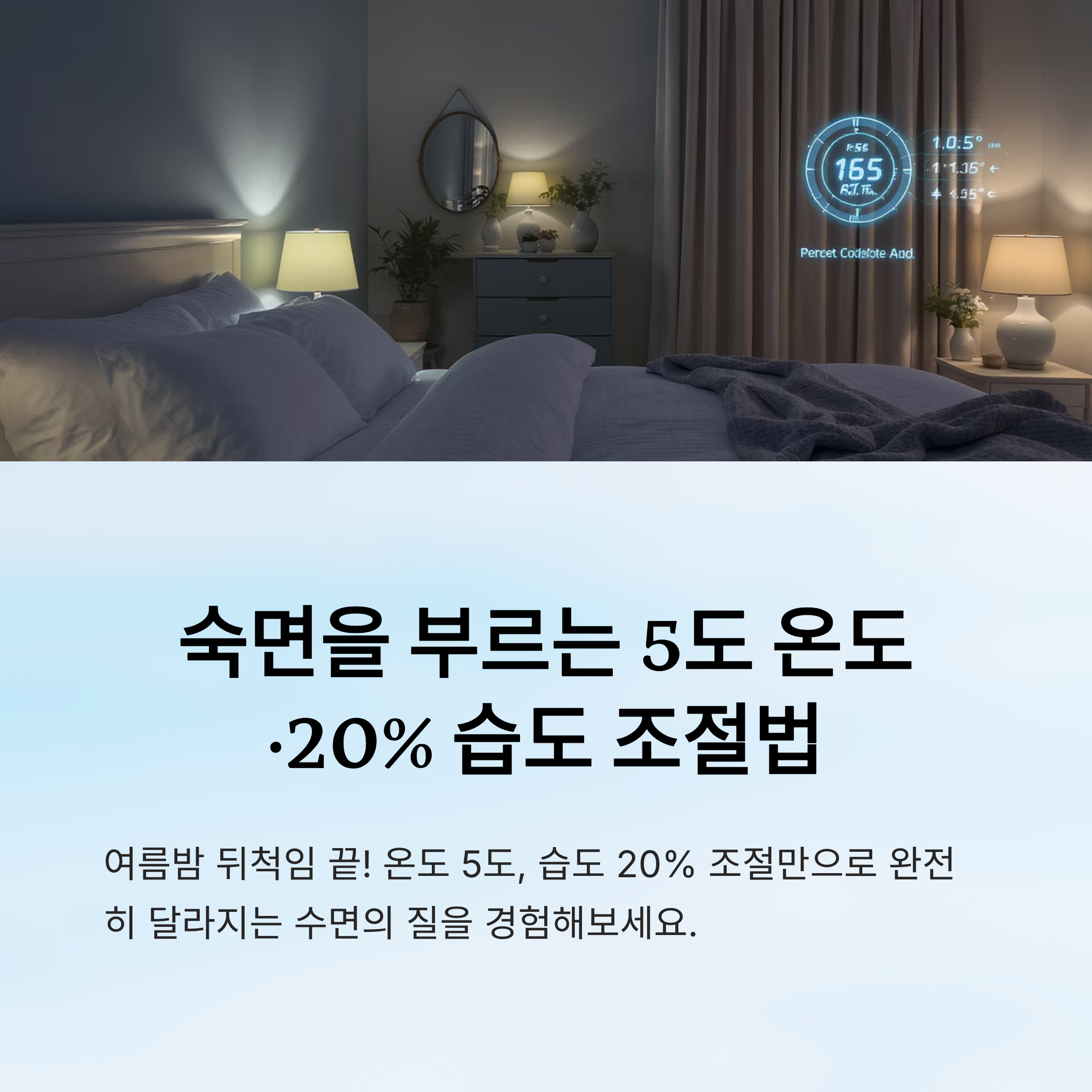 여름밤의 고통, 한 번쯤은 겪어보셨죠? 이 글에서는 수면의 질을 결정짓는 가장 강력한 무기인 '온도와 습도'에 대해 이야기해볼게요. 특히 5도만 낮춰도, 20% 습도만 바꿔도 우리의 숙면 패턴이 완전히 달라진다는 사실, 믿기 힘들지만 과학적으로 입증된 내용이에요.