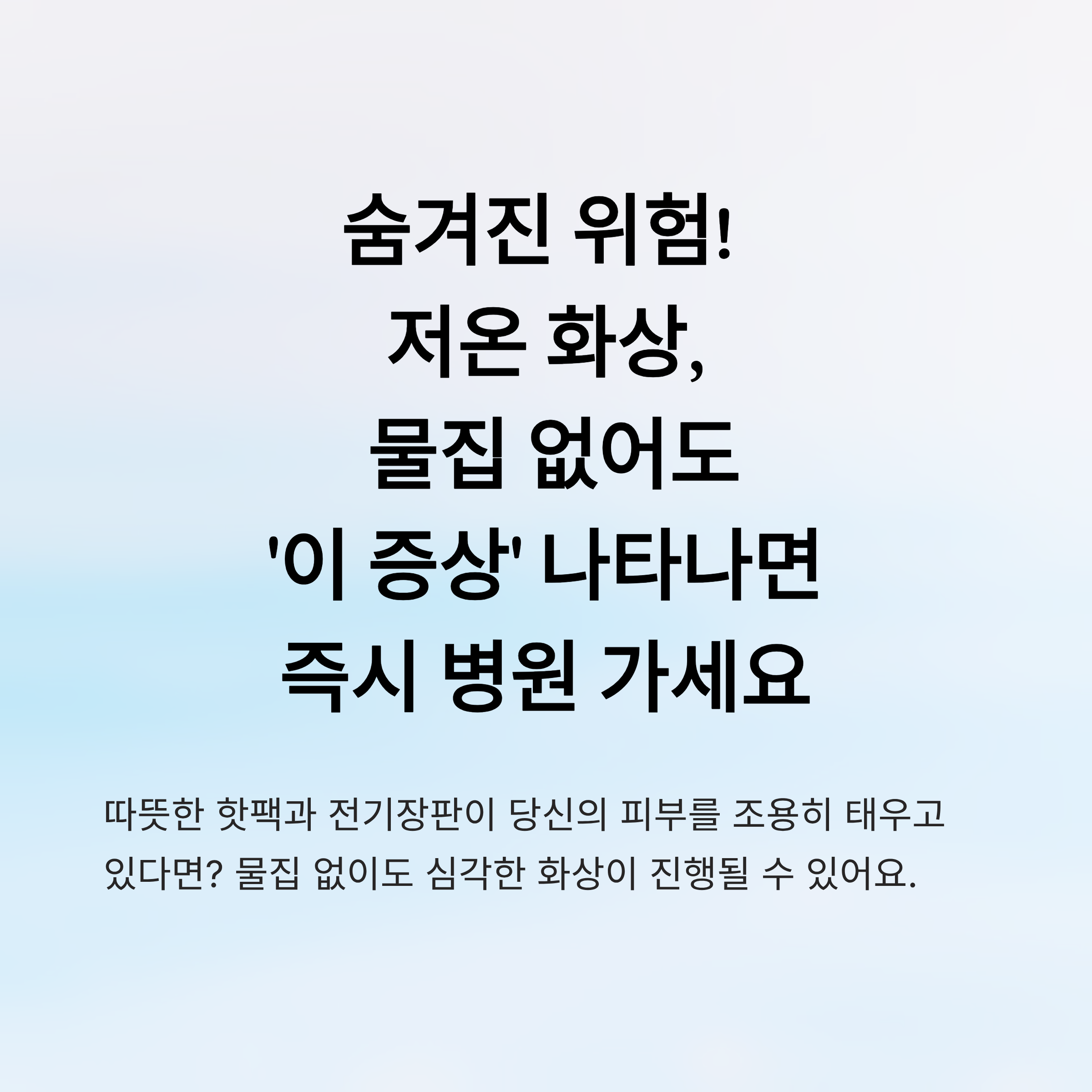 눈에 보이는 상처보다 깊은 손상이 진행될 수 있는 저온 화상은, 의외로 응급성이 높을 수 있답니다. 이상한 감각이 지속된다면 무조건 병원에 가보는 걸 추천해요.