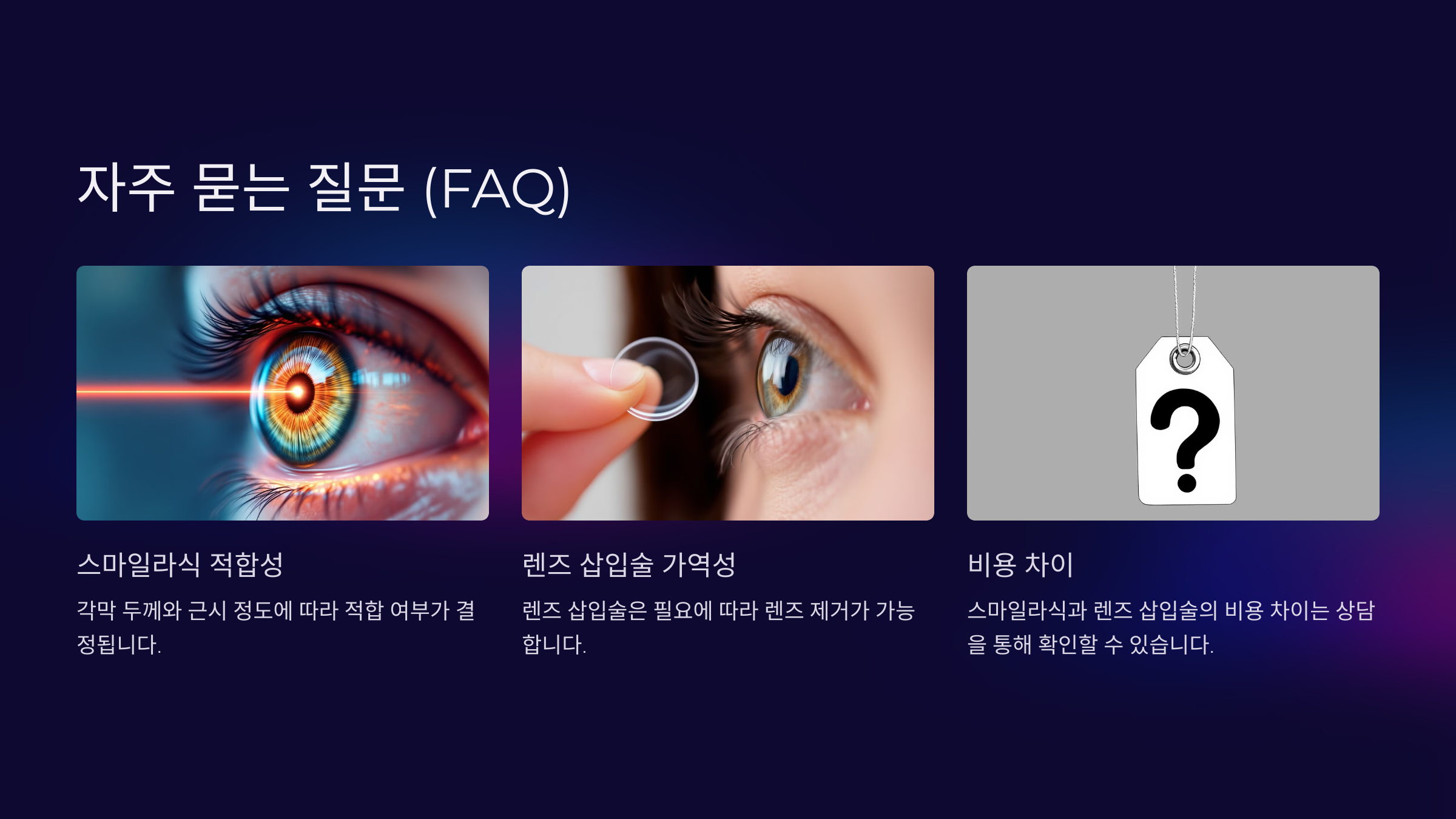 🧐 스마일라식과 렌즈 삽입술, 자주 묻는 질문 (FAQ)
