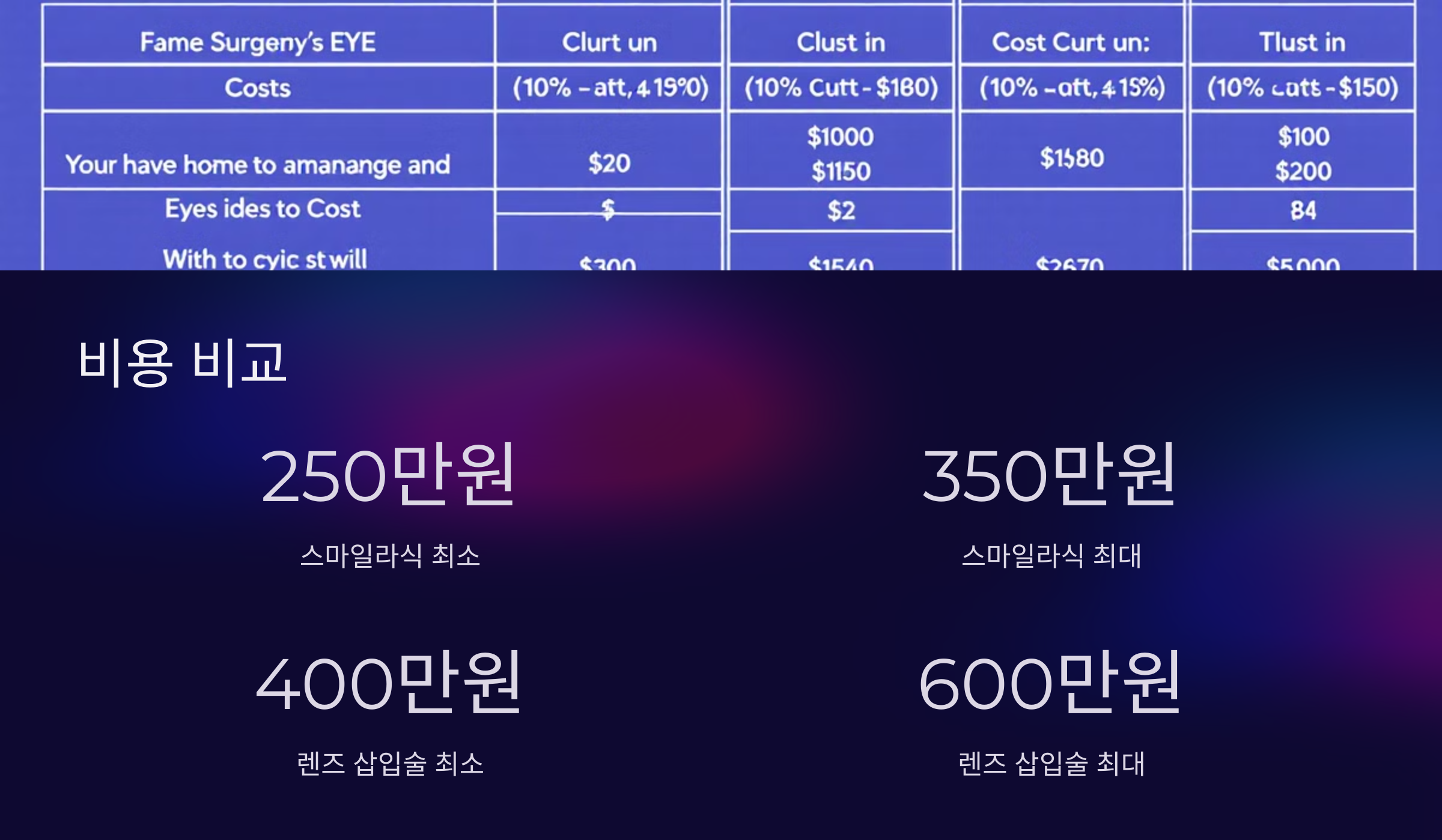 - 렌즈 삽입술: 평균 400만 원~600만 원.