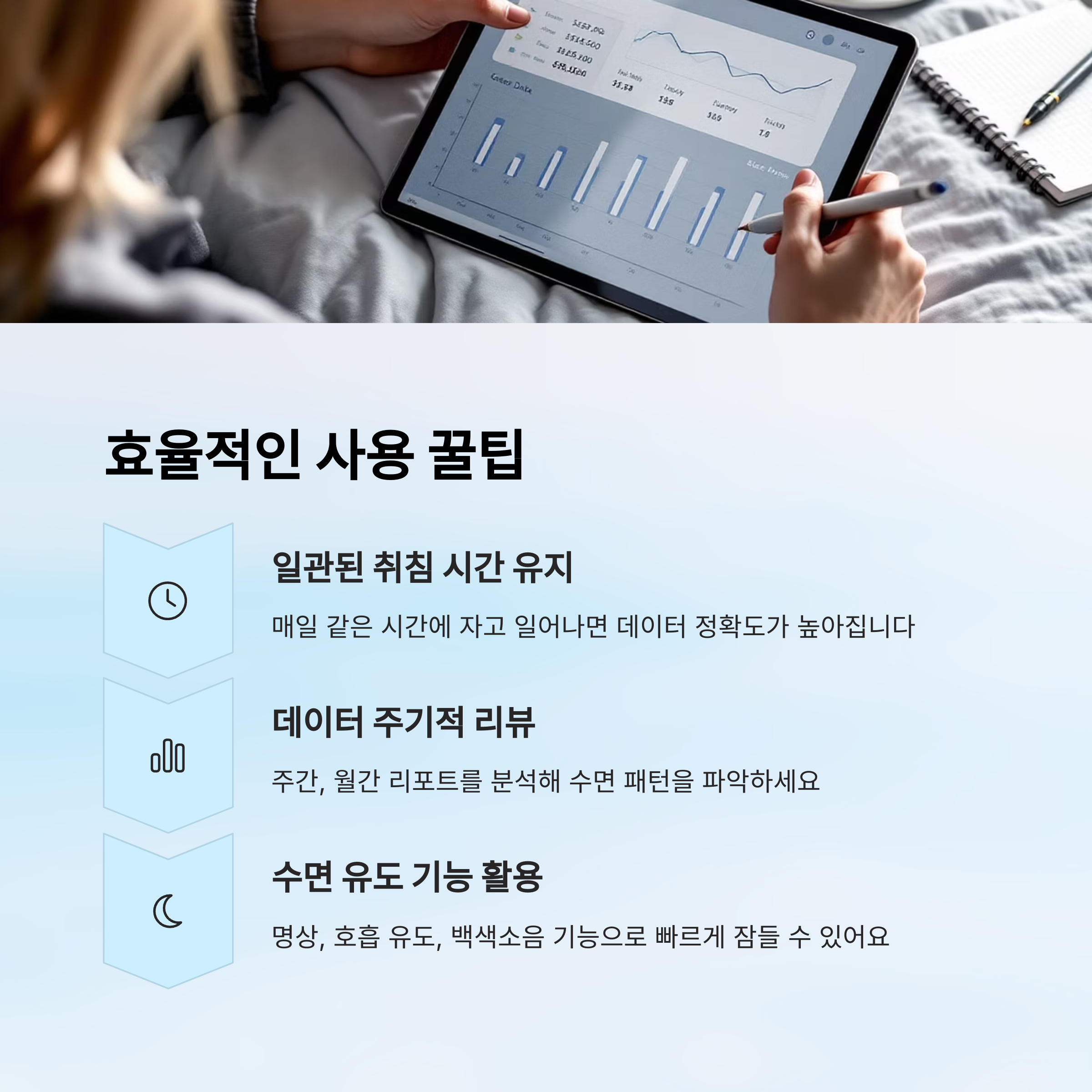 이렇게 다섯 가지 팁만 잘 지켜도, 기기의 효과는 훨씬 배가돼요. 데이터를 믿고, 생활 습관을 조금씩 바꾸면 숙면이 결코 어려운 게 아니에요. 스마트 수면 기기는 결국 나를 잘 이해하는 도구예요. 제대로 쓰면 정말 달라질 수 있어요! 🌟
