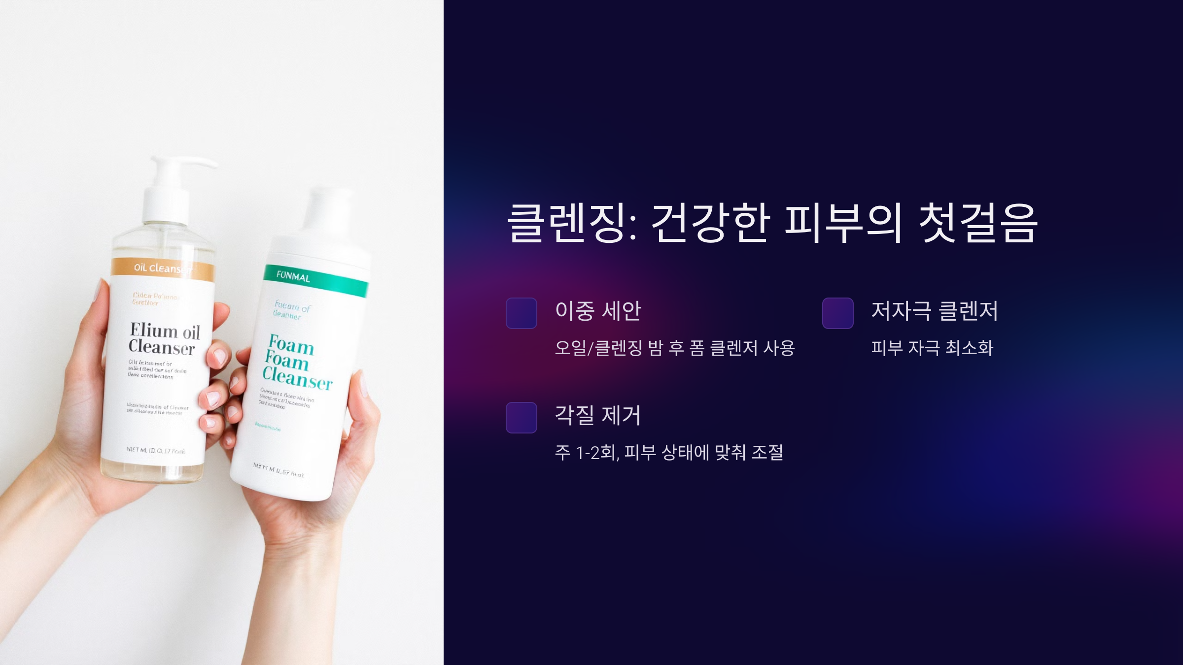 클렌징 후 피부가 건조하지 않도록 적절한 제품을 선택하세요.