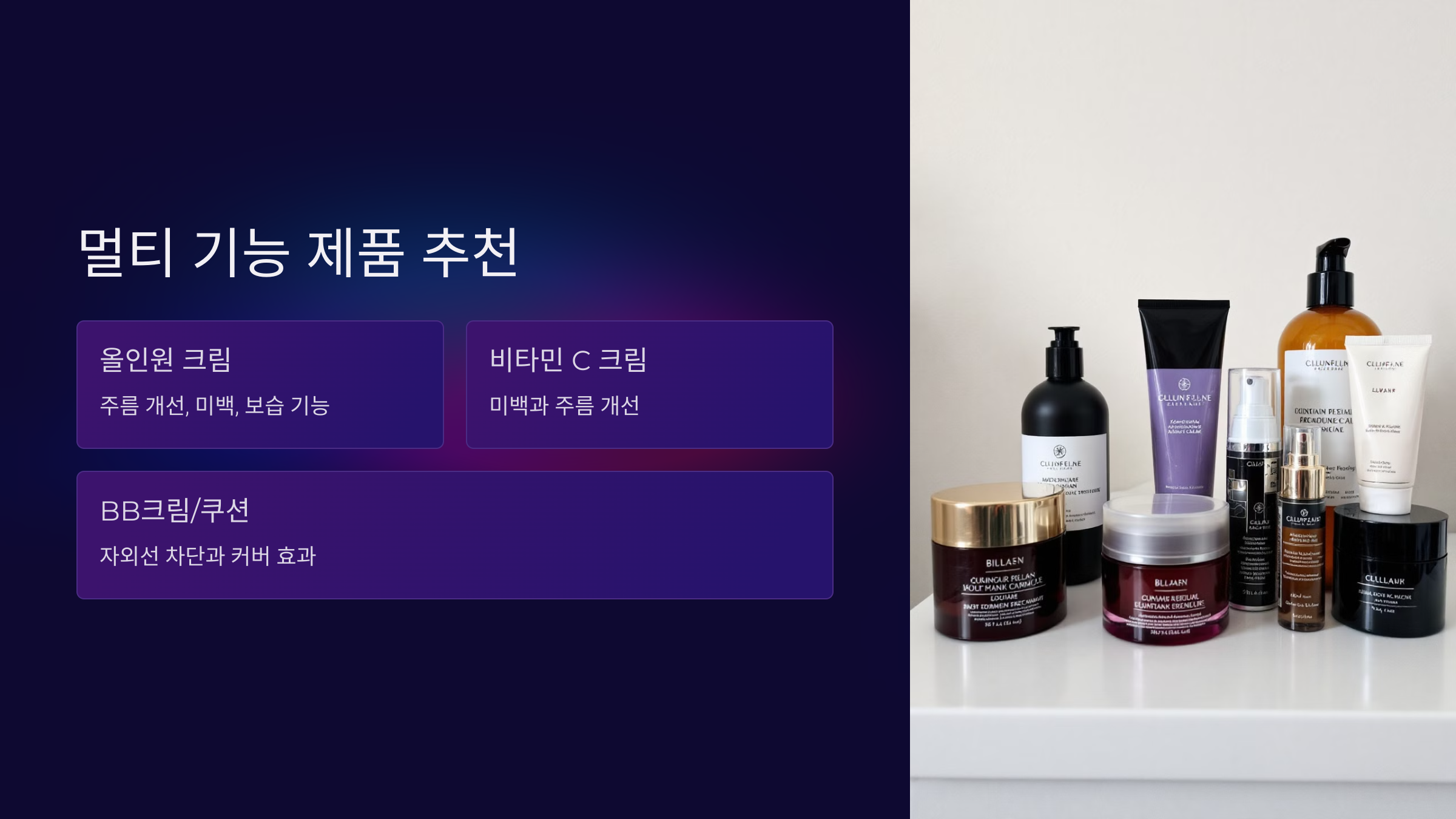 멀티 기능 제품을 사용하면 간단한 스킨케어 루틴을 완성할 수 있습니다.