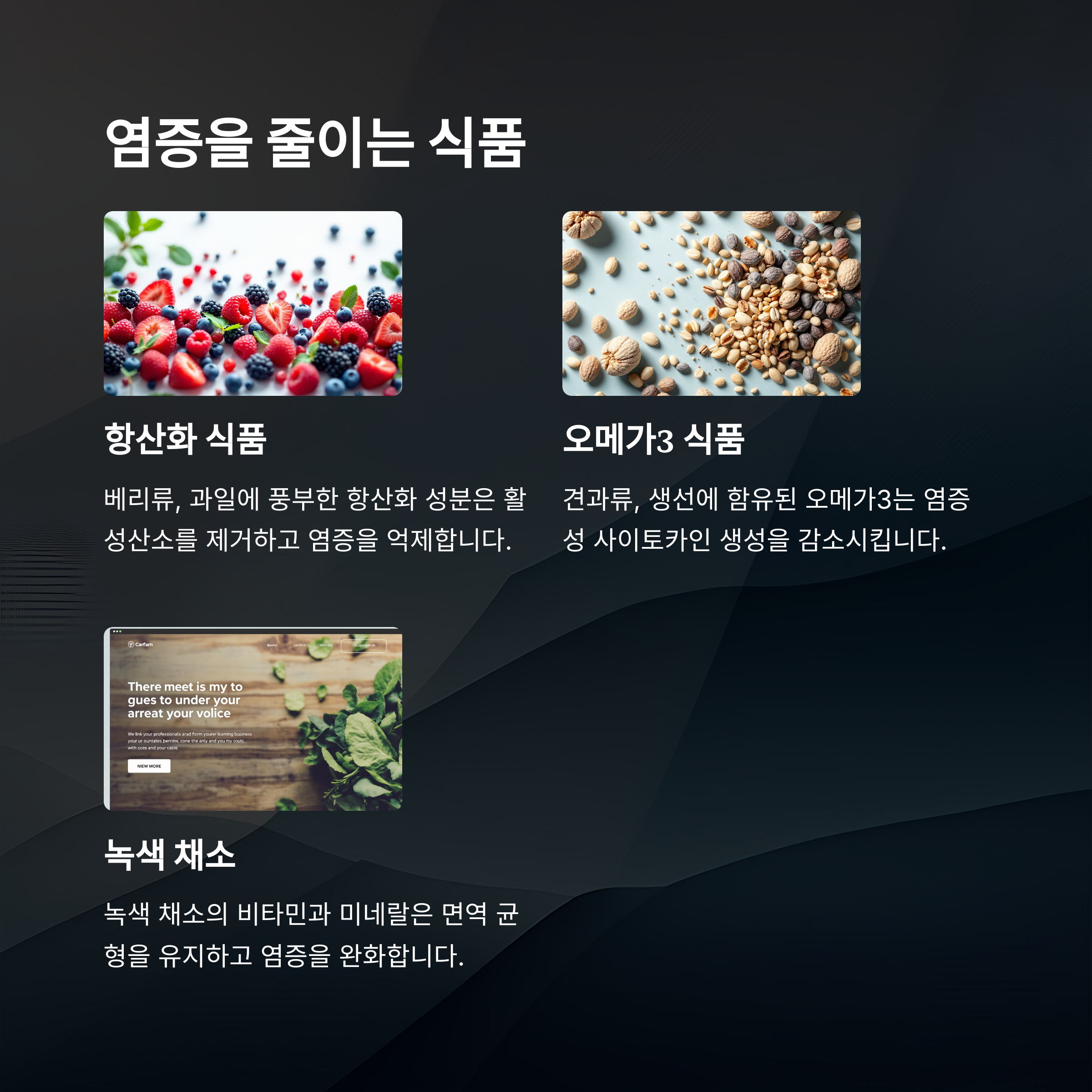 또한 충분한 수면, 항산화 식품 섭취, 사회적 관계 유지도 염증 예방에 큰 도움이 돼요. 무엇보다 ‘나를 돌보는 시간’을 꼭 챙기는 습관이 가장 중요한 실천 방법이에요.