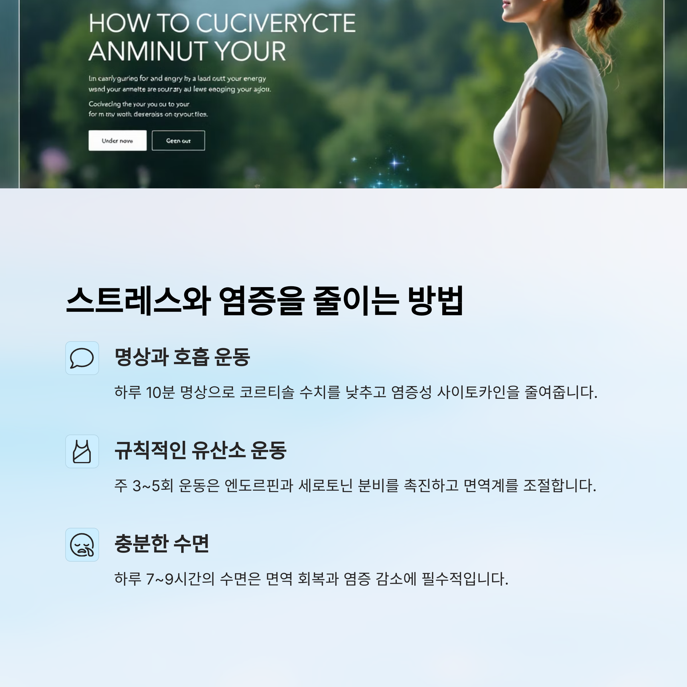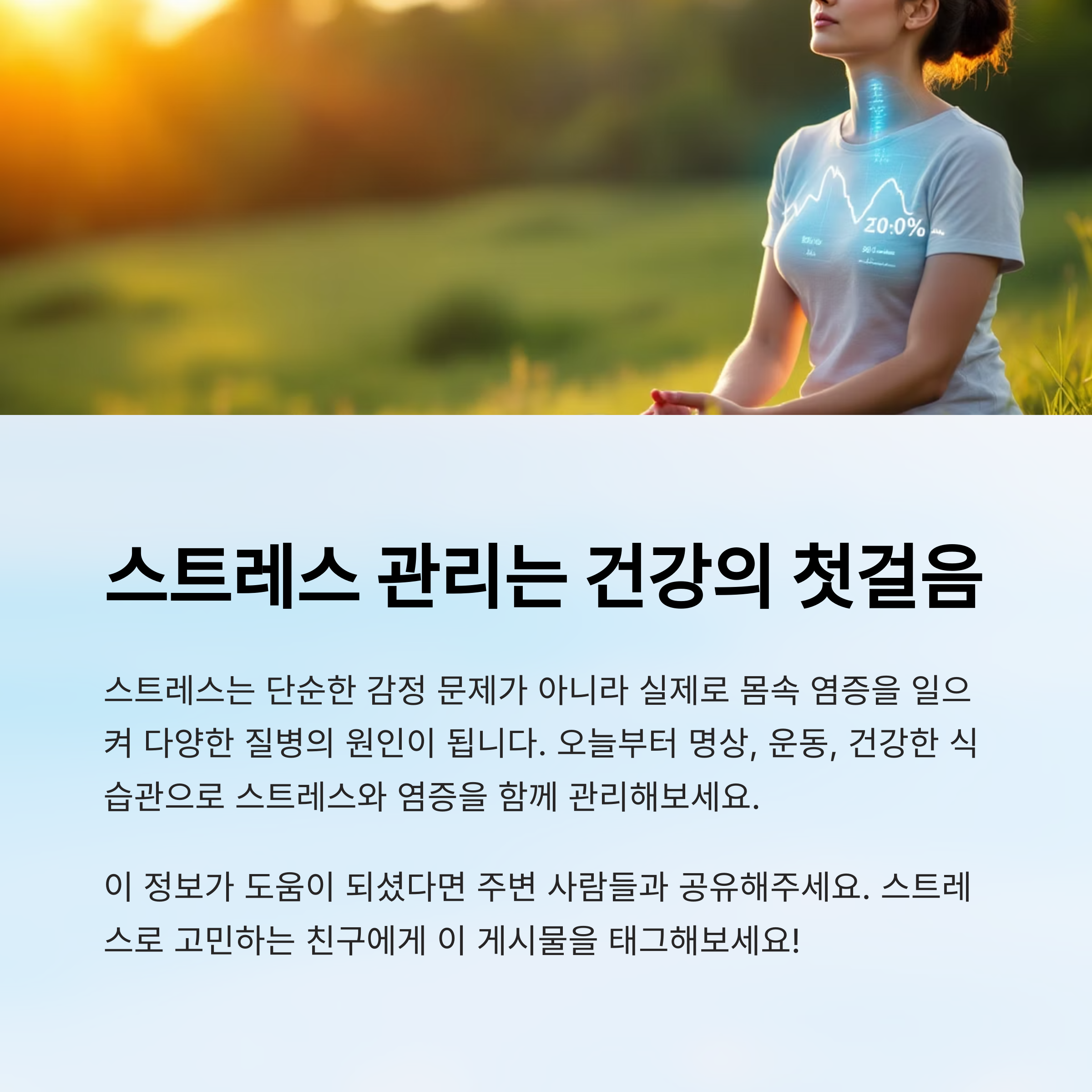 지금 이 순간에도 스트레스를 줄이기 위한 작은 실천을 해보세요. 그게 몸속 염증을 낮추는 가장 강력한 예방이 될 수 있어요. 🌿