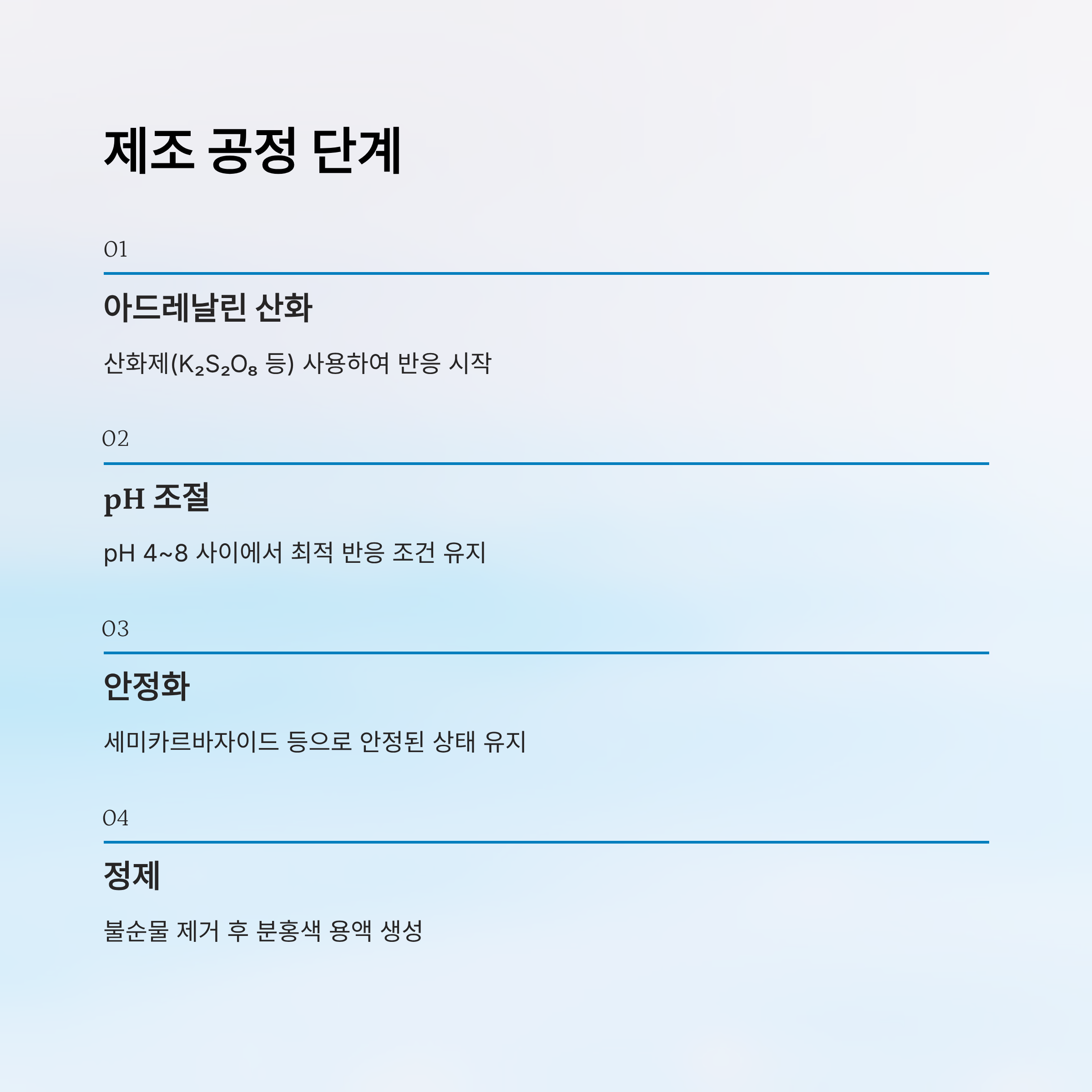 | 1 | 아드레날린 산화 | 산화제(K₂S₂O₈ 등) 사용 |