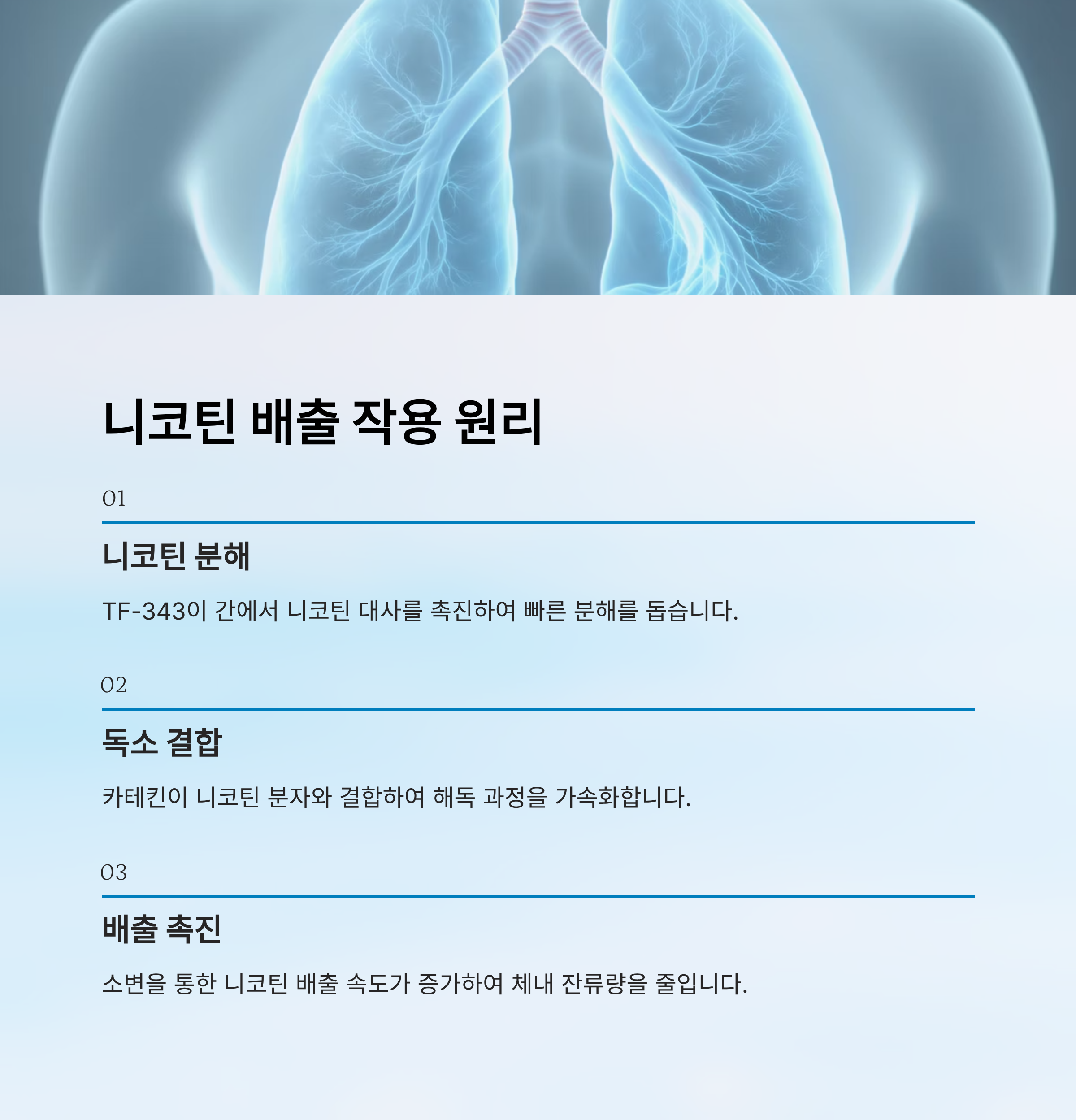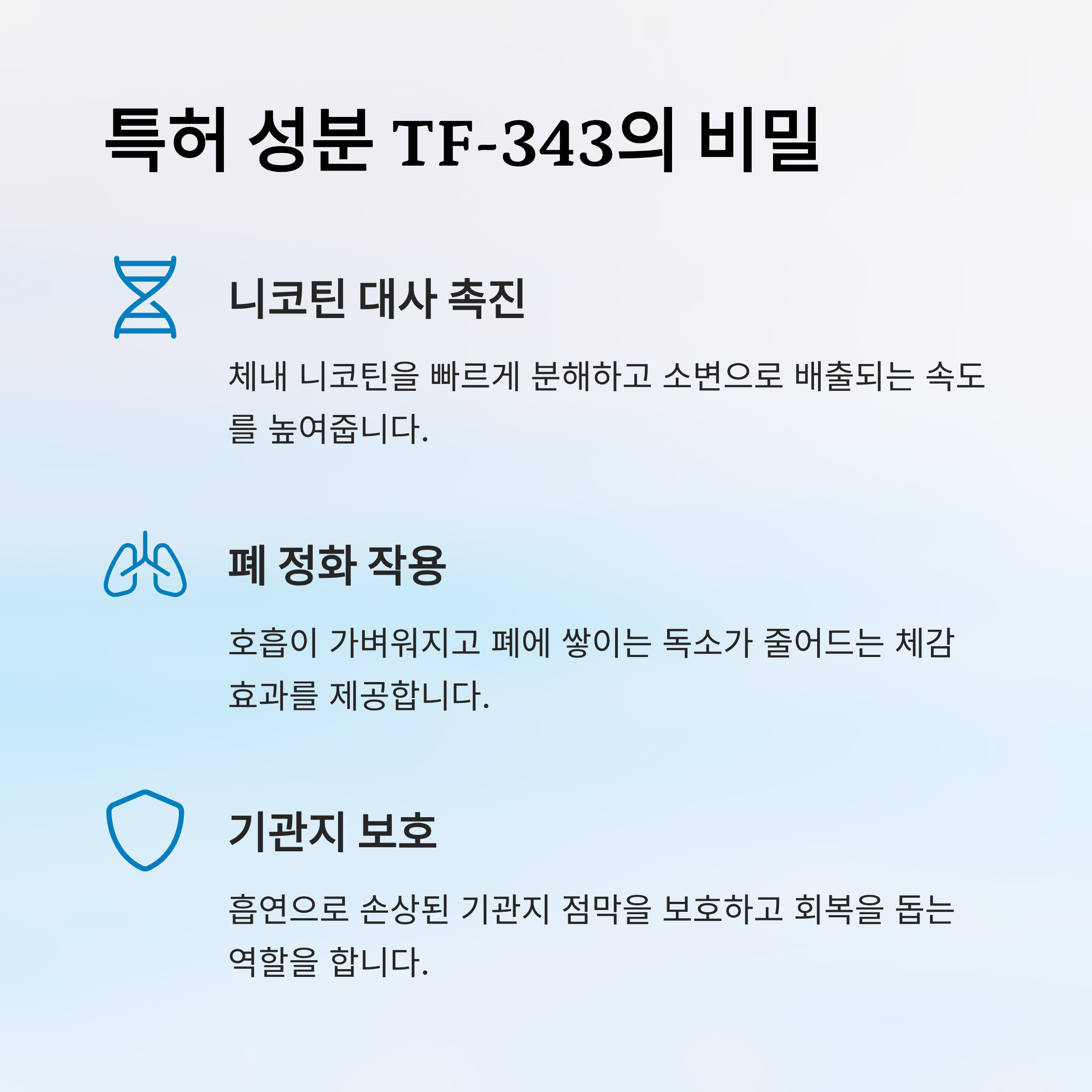 | TF-343 | 특허 성분 | 니코틴 대사 촉진 | 임상 연구 근거 |