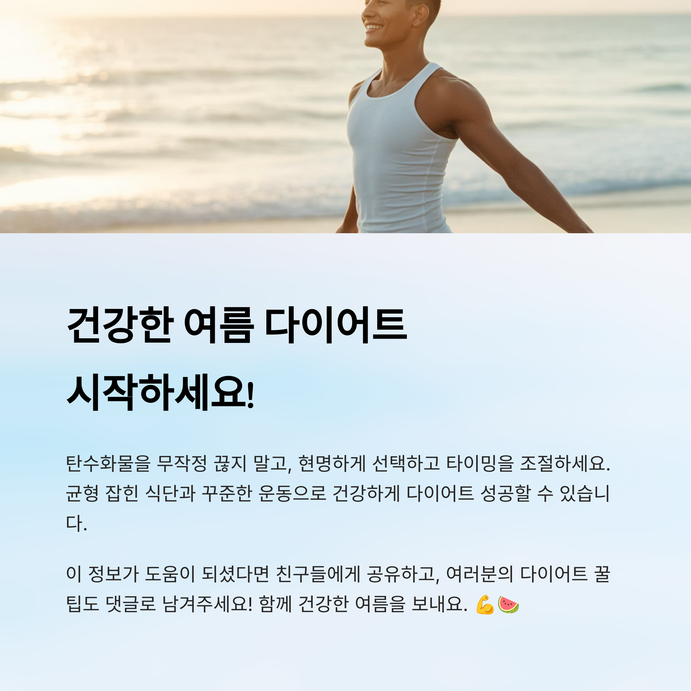 하지만 무작정 탄수화물을 피하는 건 오히려 건강에도 좋지 않고, 다이어트 실패로 이어질 수 있답니다. 오늘은 여름철에도 건강하고 맛있게 다이어트할 수 있는 '탄수화물 꿀팁'을 소개할게요. 제가 생각했을 때 이 정보는 진짜 여름 다이어트에 큰 도움을 줄 수 있어요! 🍉