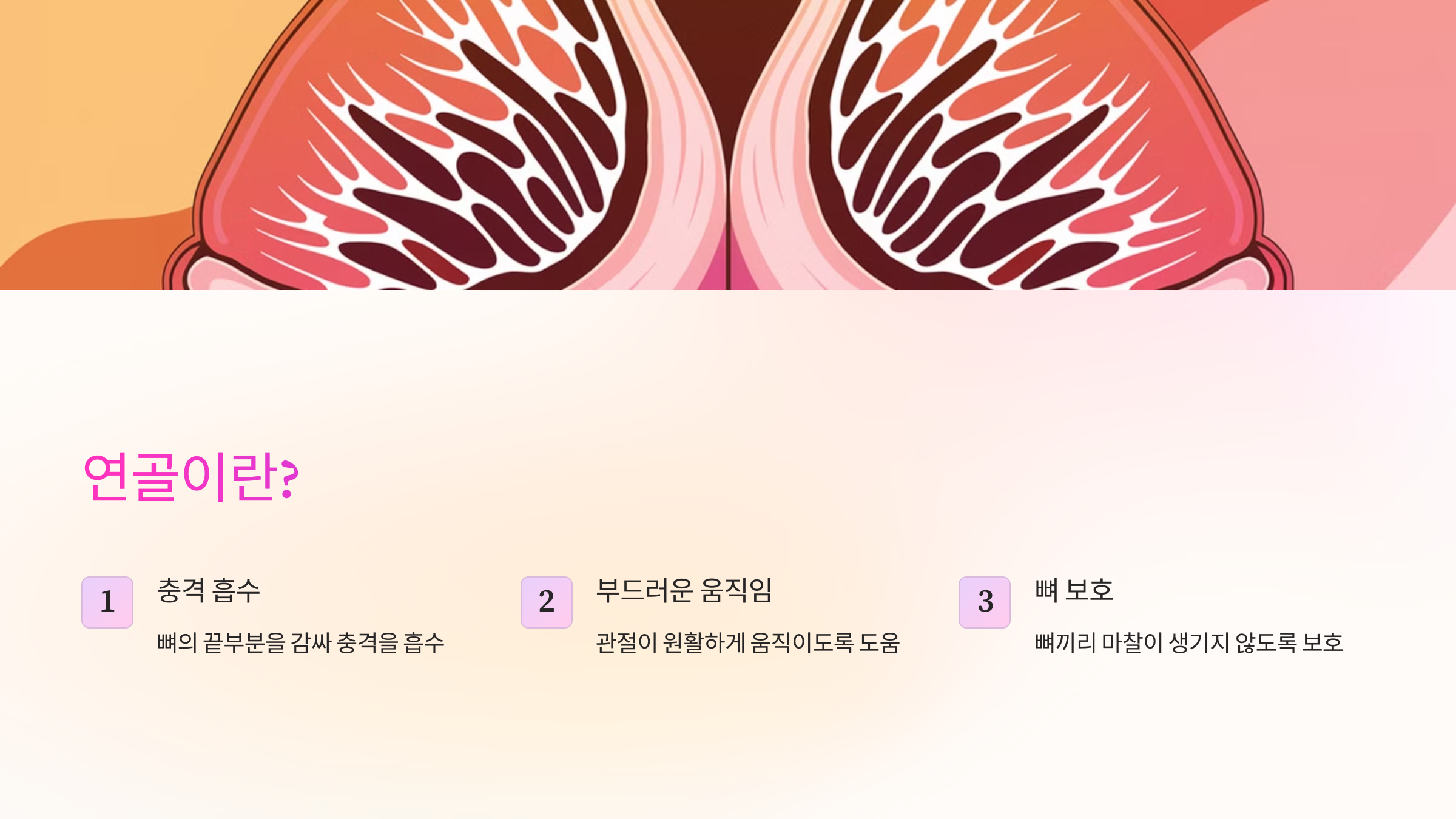 | 뼈 보호 | 뼈끼리 마찰이 생기지 않도록 보호해요. |