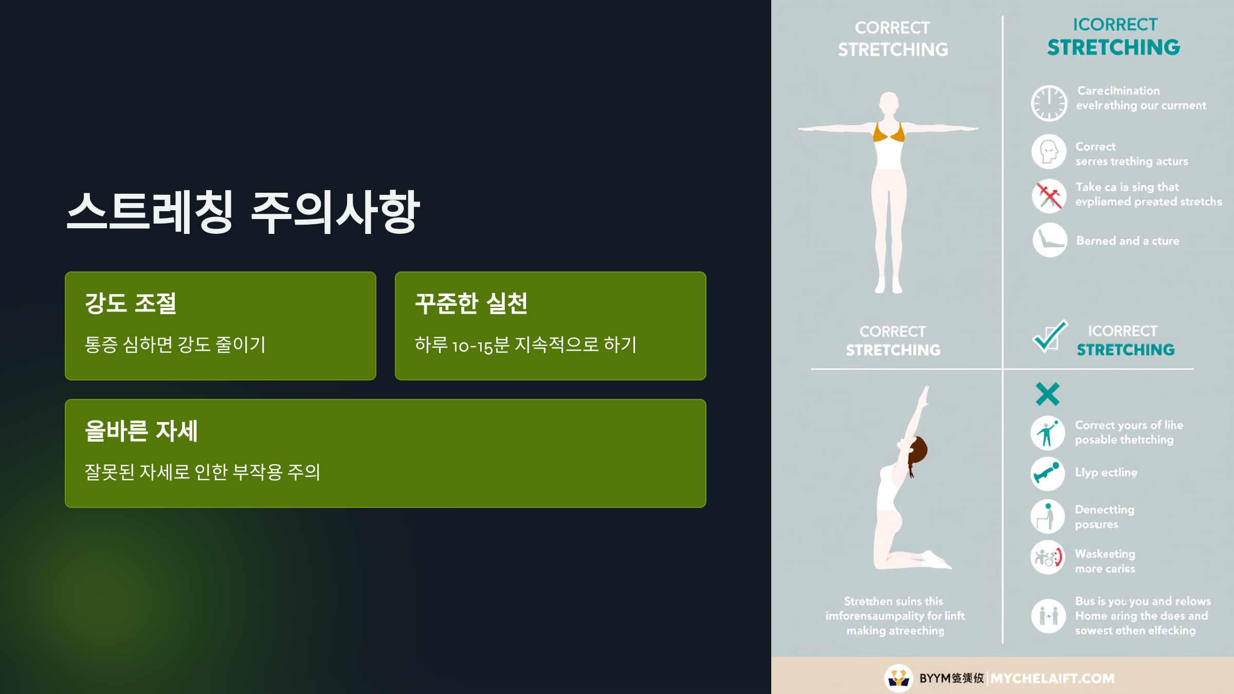 스트레칭은 통증 완화에 도움을 주지만, 무리하면 오히려 염증이 심해질 수 있어요. - 꾸준히 매일 실천하세요.