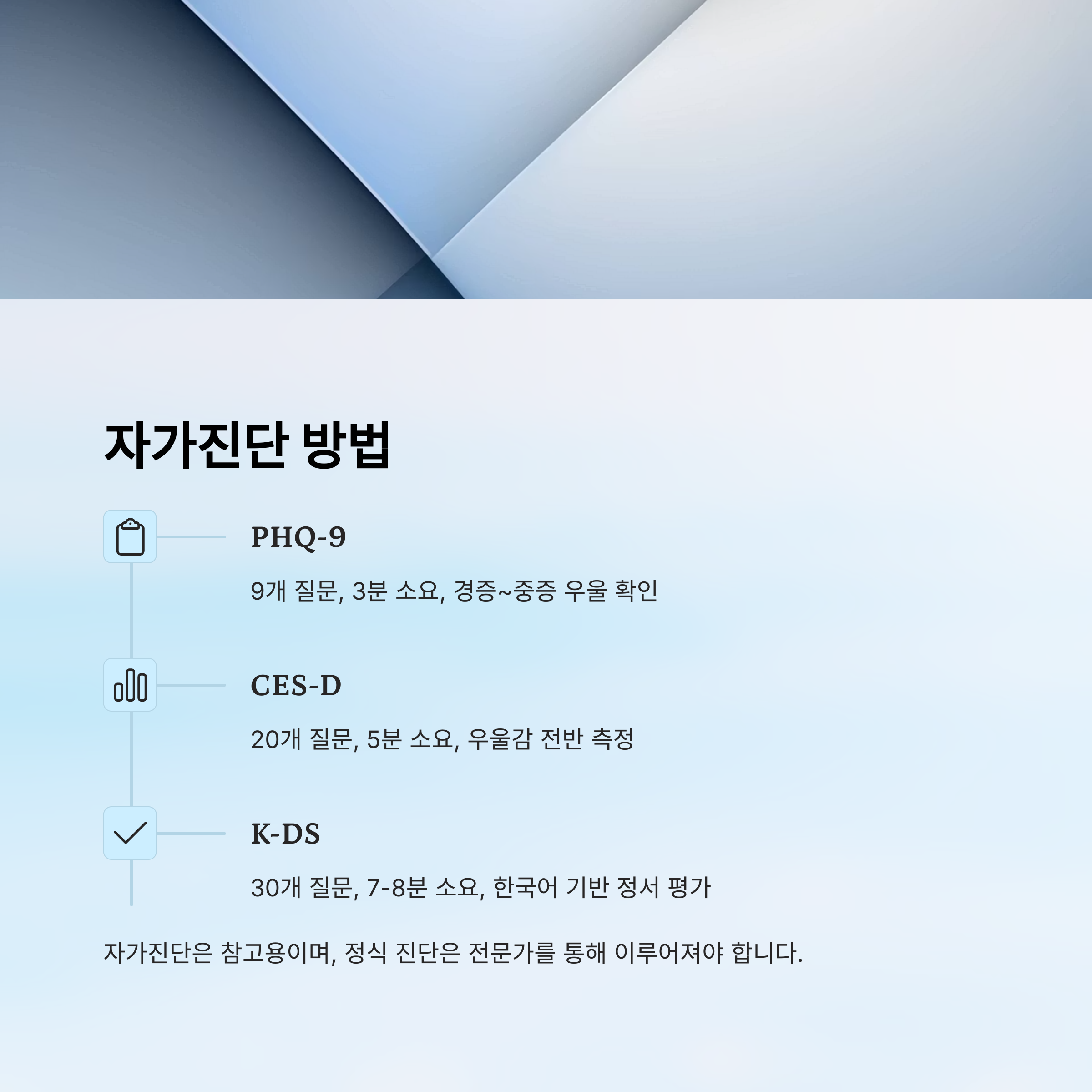 우울증 자가진단은 내 감정을 수치화하고, 문제의 시작점을 찾는 유용한 도구예요. 하지만 어디까지나 참고용이라는 점도 꼭 기억해야 해요. 정식 진단은 전문가의 손에서 이뤄져야 하니까요 💡