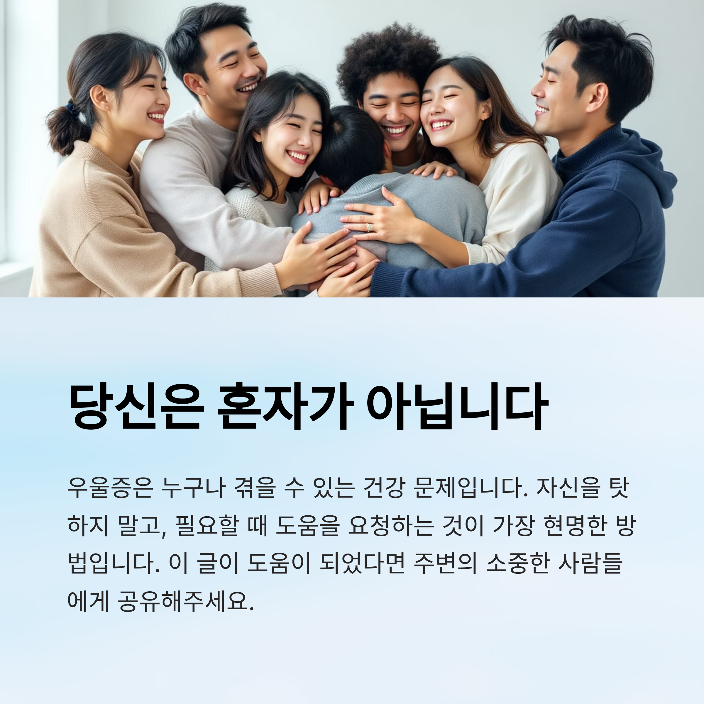 우울증은 혼자 견딘다고 해서 자연스럽게 나아지는 병이 아니에요. 오히려 시간이 지나면서 더 깊어질 수 있기 때문에, 전문가 상담을 받는 시점을 놓치지 않는 것이 가장 중요해요. 지금 내가 어떤 상태인지 인지하는 것이 먼저예요.
