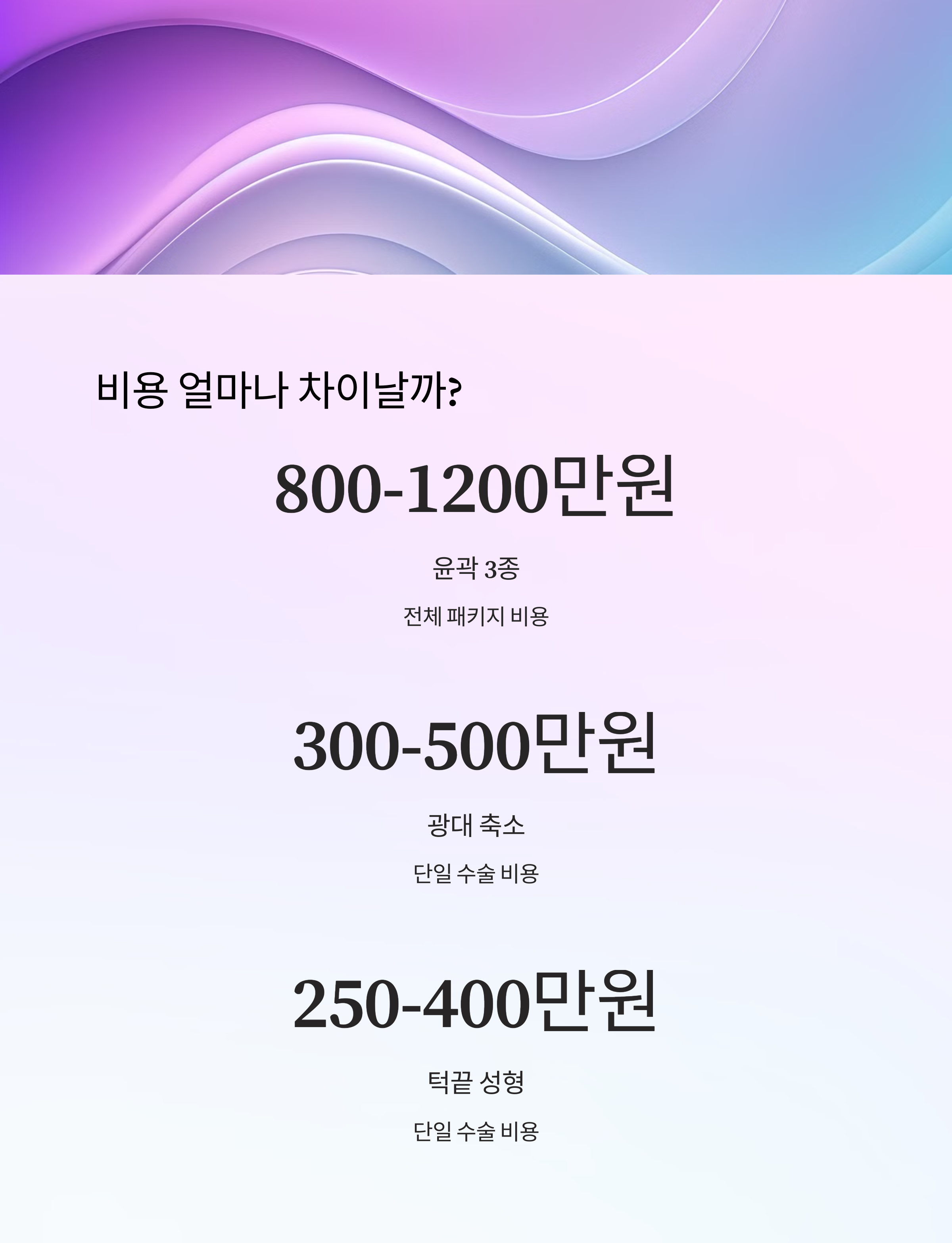 | 윤곽 3종 | 400~1,000만 원 | 얼굴 전체 윤곽 개선 |