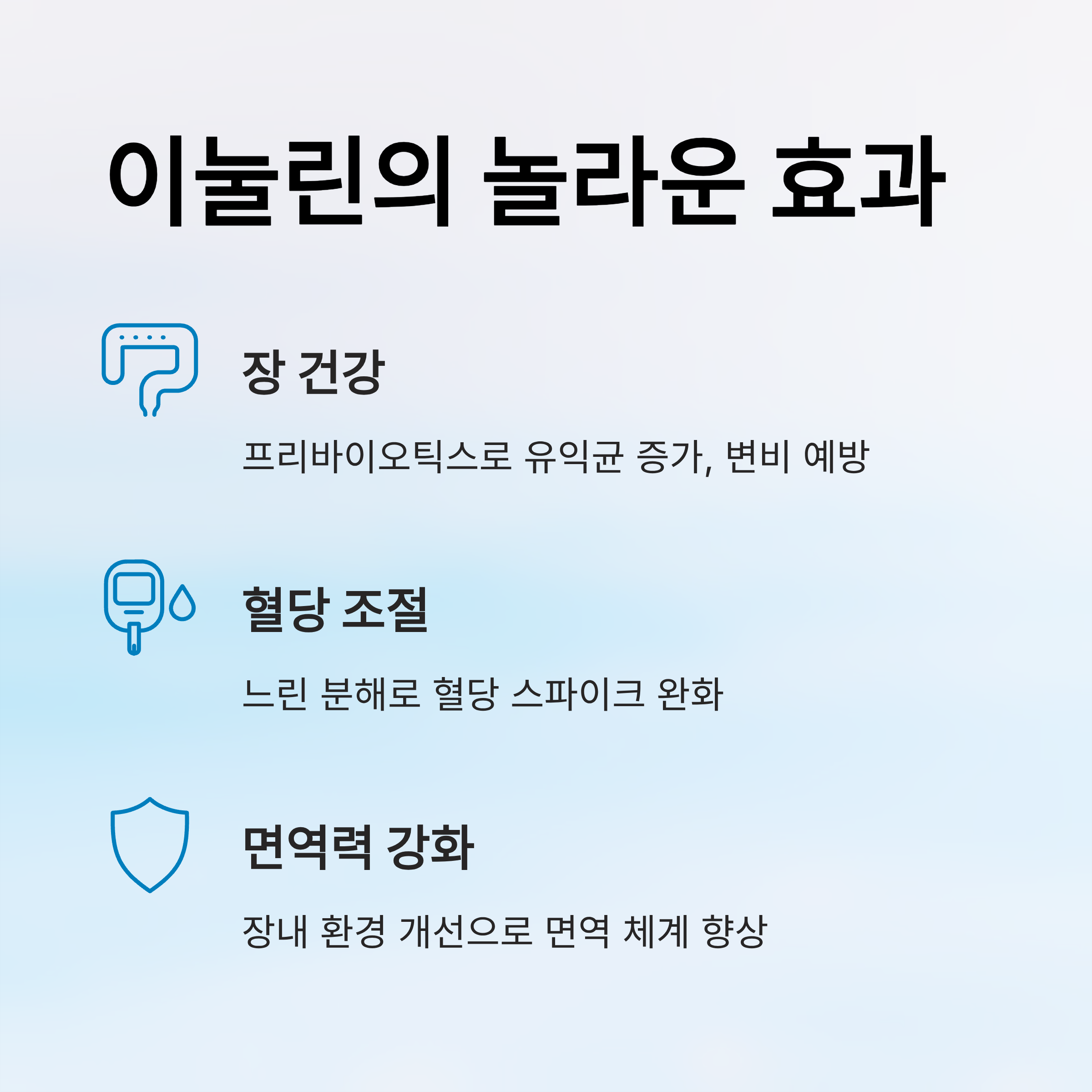 히카마에 가장 많이 함유된 성분 중 하나는 이눌린(Inulin)이에요. 이눌린은 천연 프리바이오틱스로 불리며, 장내 유익균을 늘려주는 역할을 해요. 장 건강을 지켜줄 뿐 아니라 변비를 예방하고 배변 활동을 원활하게 돕는 효과도 있답니다. 꾸준히 먹으면 장내 환경이 개선되어 면역력에도 긍정적인 영향을 줄 수 있어요.