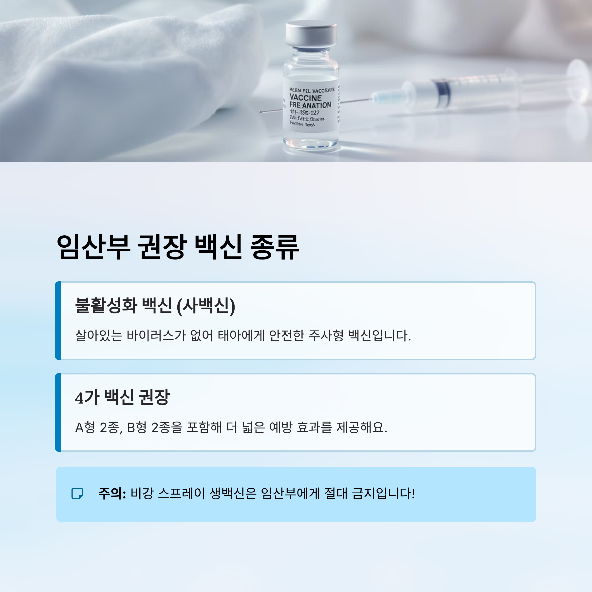 임산부에게 권장되는 독감 백신은 ‘비활성화 인플루엔자 백신(IV, Inactivated Vaccine)’이에요. 이 백신은 살아있는 바이러스를 포함하지 않기 때문에 태아에게 영향을 주지 않고, 임산부의 면역력을 안정적으로 높여줘요.