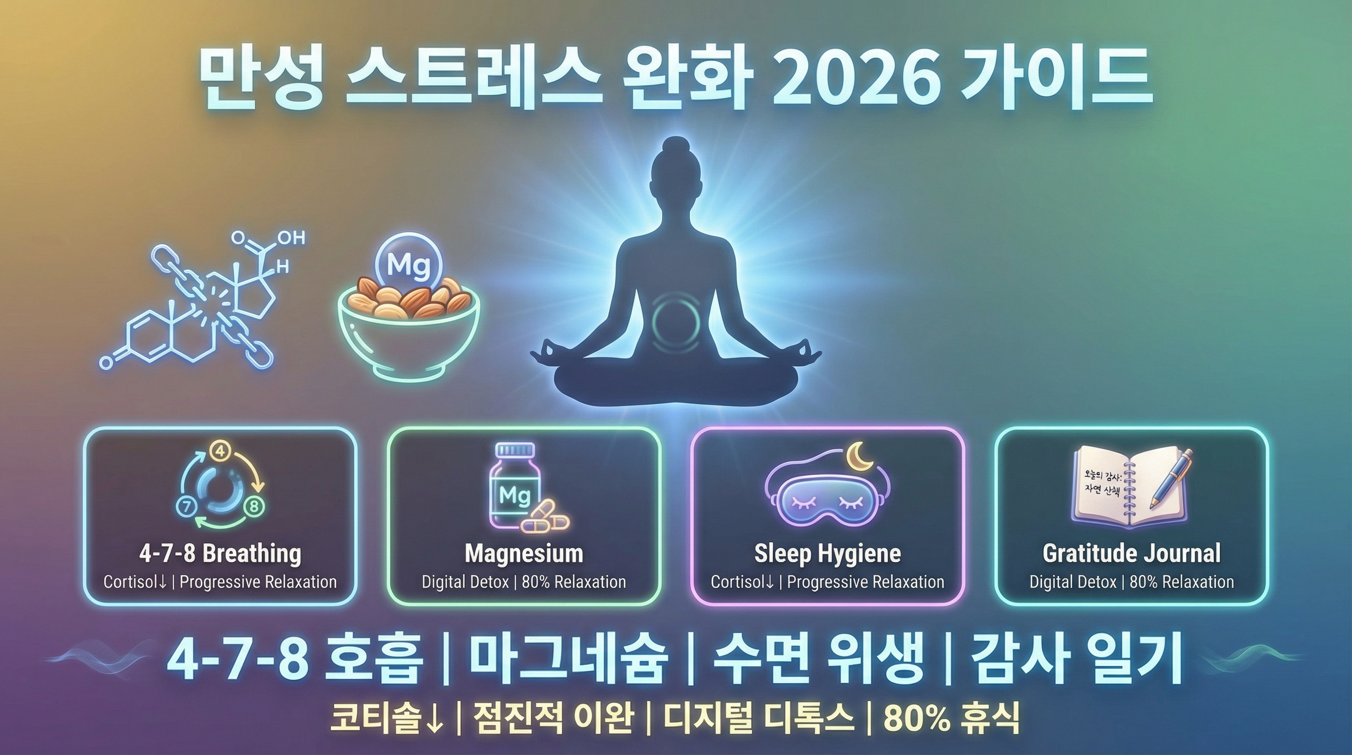 스트레스는 없애는 것이 아니라 '관리'하는 것입니다. 우리 몸의 회복 탄력성(Resilience)을 높이는 것이 만성 스트레스 극복의 첫걸음입니다.