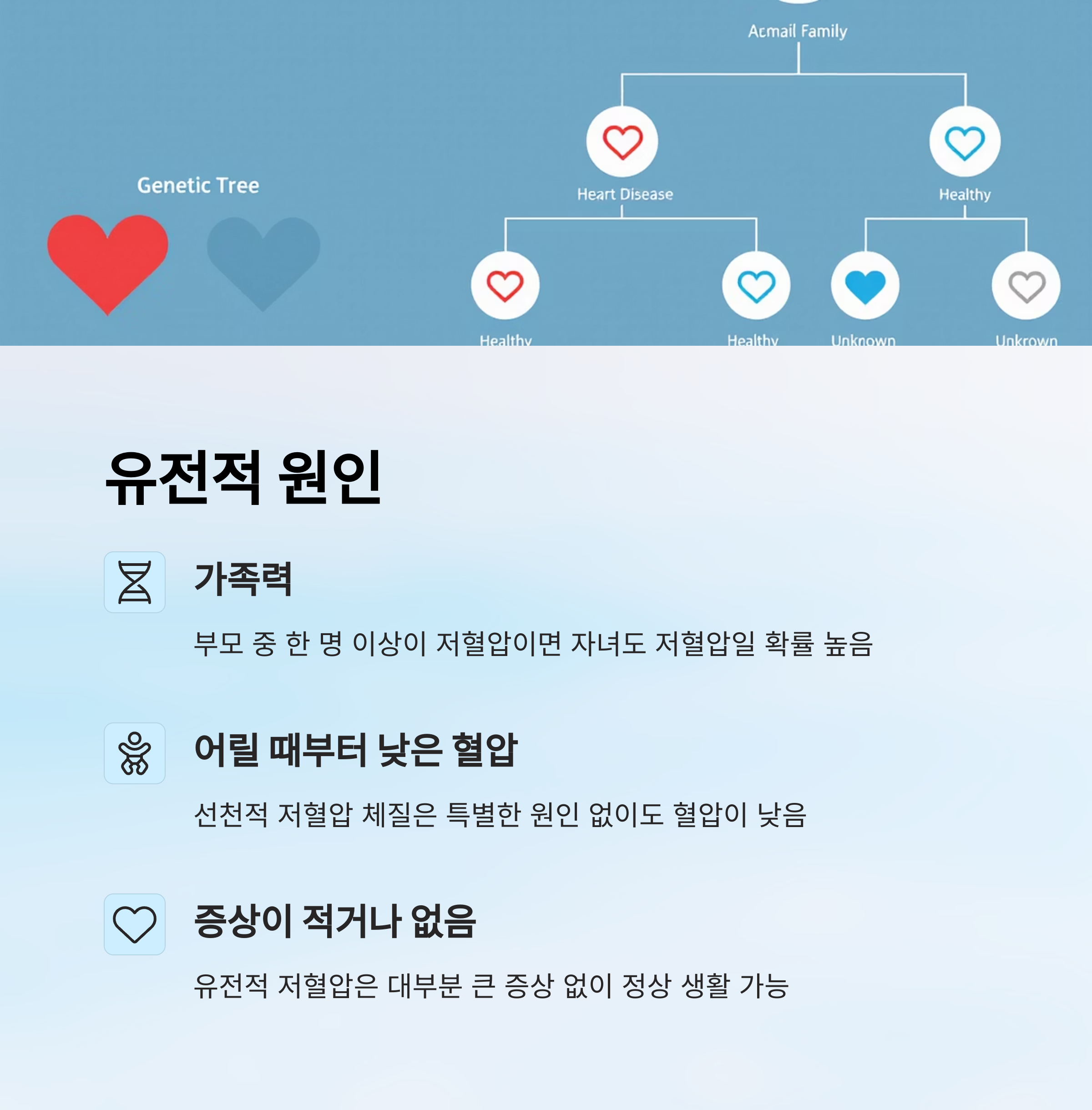 | 구분 | 유전적 저혈압 | 생활습관 저혈압 |