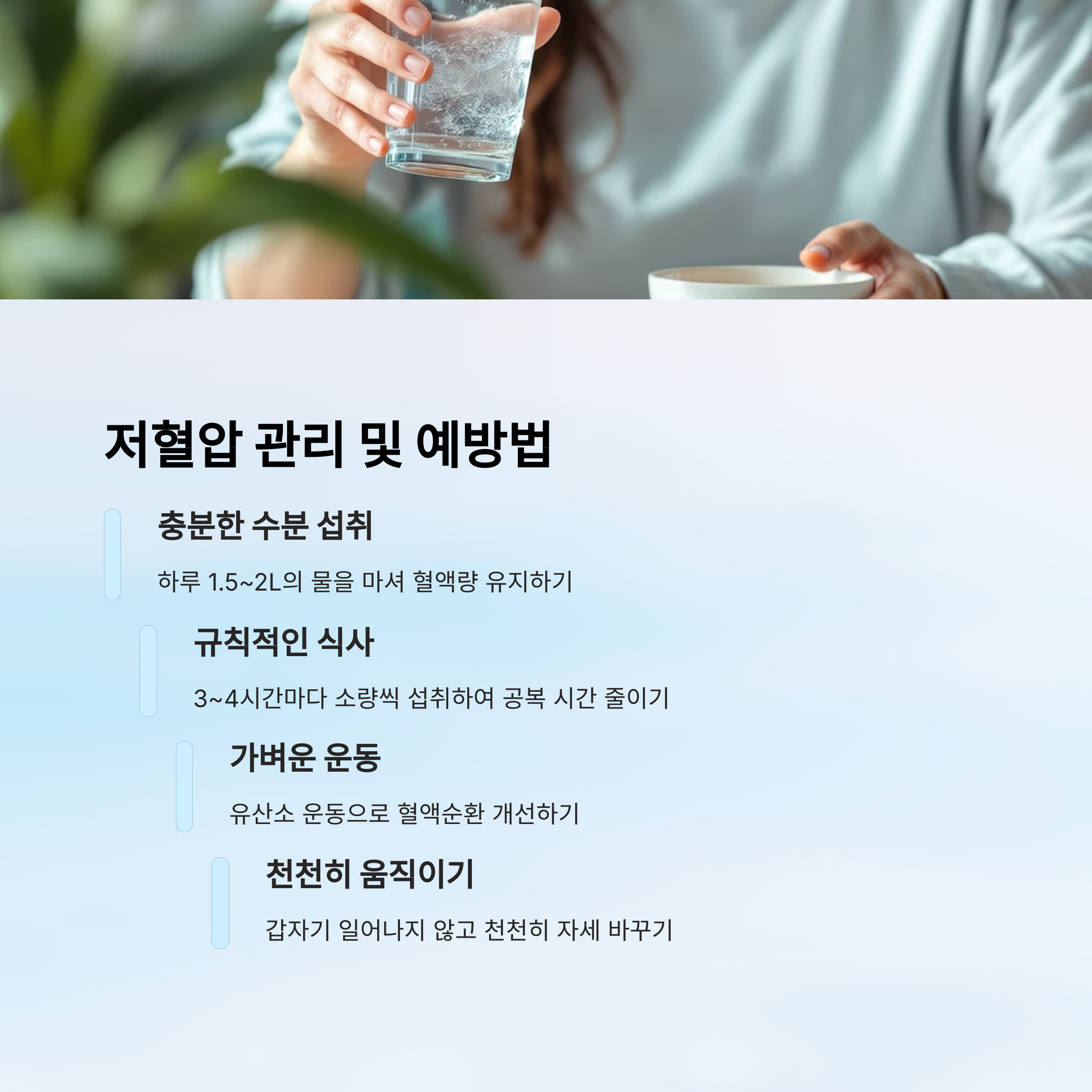 저혈압이 있는 경우 일상에서 몇 가지 간단한 습관을 실천하면 증상을 완화하고 건강한 혈압을 유지할 수 있어요. 생활습관 개선을 통해 저혈압을 예방하는 것이 가장 효과적인 방법이에요!