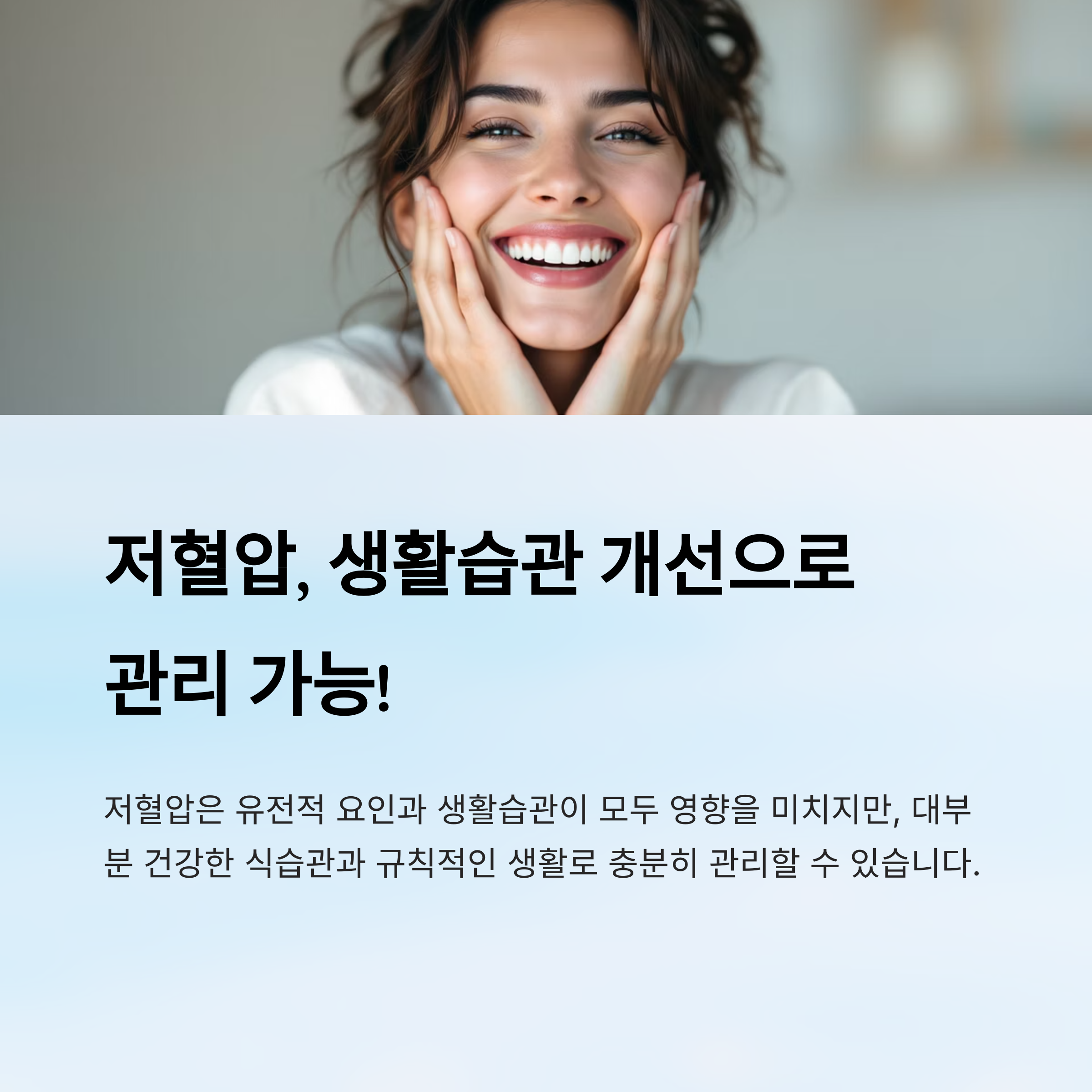 저혈압은 유전적 요인과 생활습관이 모두 영향을 미칠 수 있어요. 하지만 대부분의 경우 건강한 식습관과 규칙적인 생활을 유지하면 충분히 관리할 수 있답니다! 😊