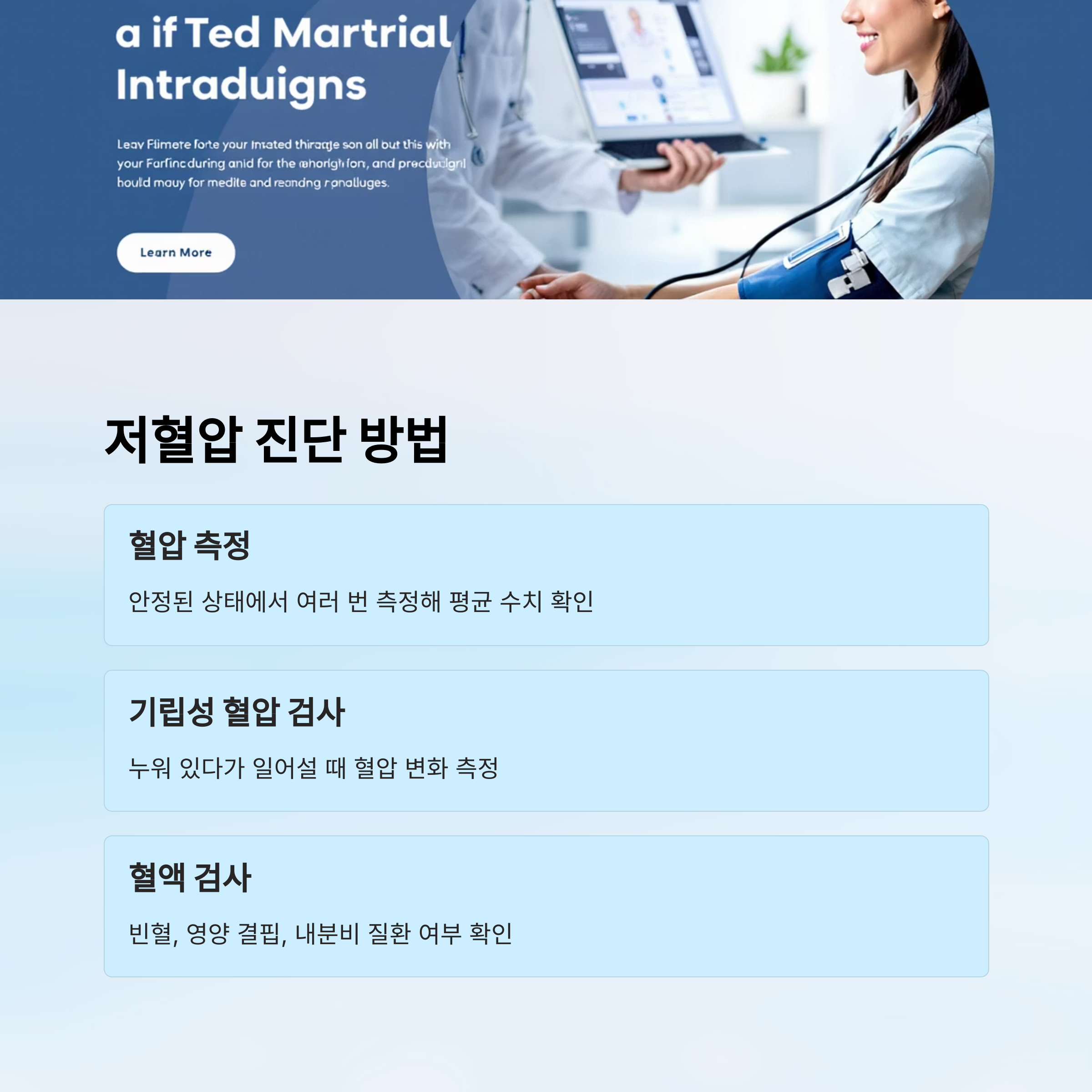 저혈압을 정확히 진단하려면 혈압 측정을 포함한 다양한 검사가 필요해요. 저혈압이 단순한 체질 때문인지, 질병이나 생활습관과 관련된 것인지 확인하는 것이 중요해요.
