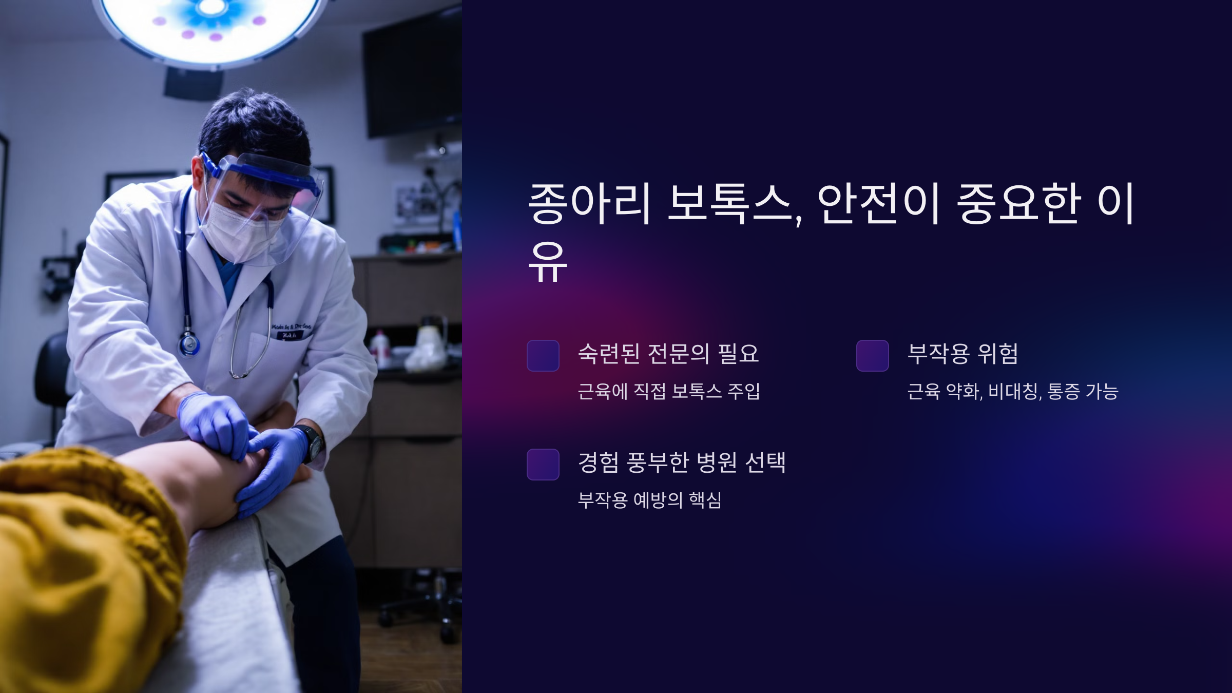 - 검색 키워드 예시: "종아리 보톡스 안전한 병원", "부작용 없는 종아리 보톡스"