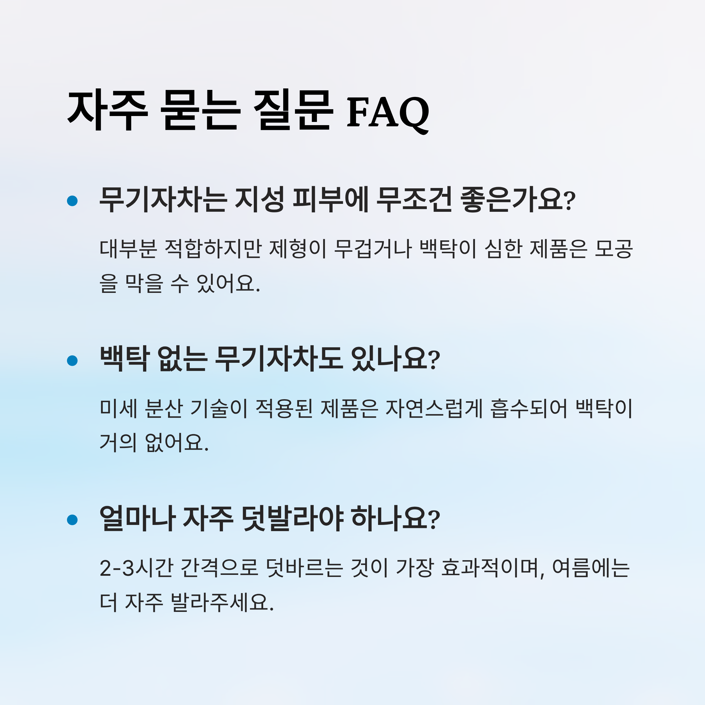 Q7. 무기자차는 얼마나 자주 덧발라야 하나요?