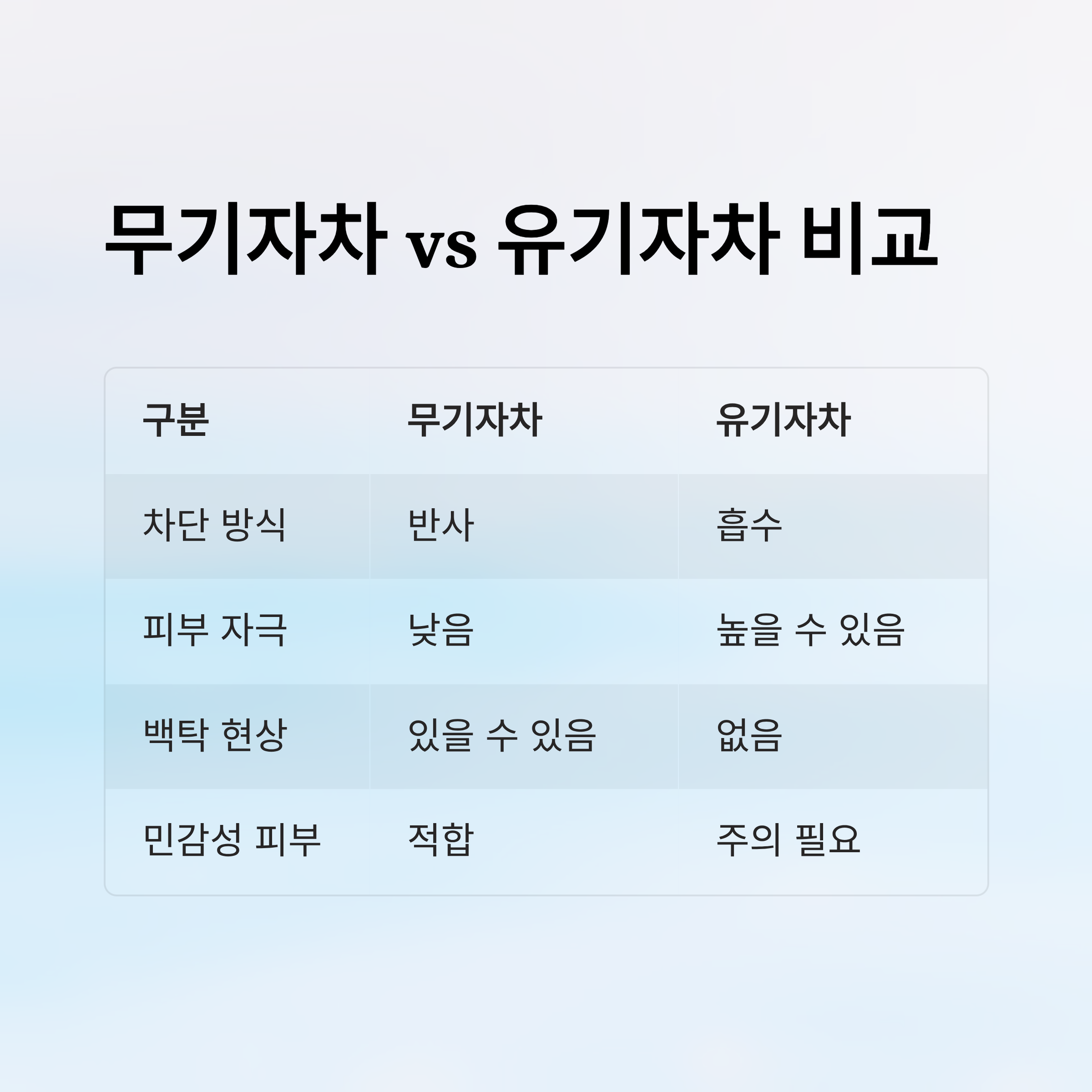 📜 무기자차 vs 유기자차 비교표