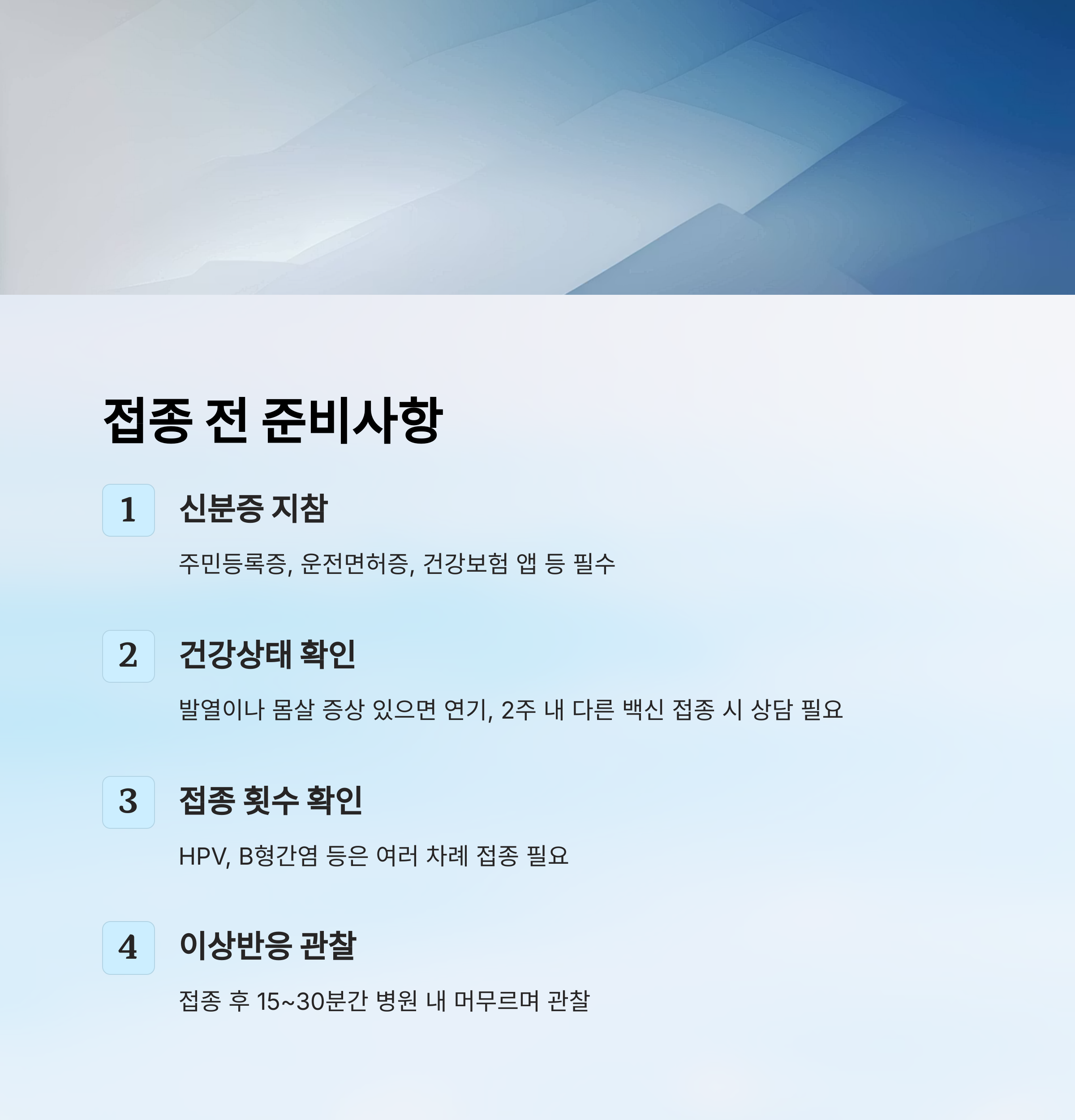 접종 당일엔 컨디션이 좋아야 하고, 발열이나 몸살 증상이 있다면 반드시 연기해야 해요. 최근 2주 내 다른 백신을 맞았다면 의료진에게 사전 상담이 필요해요.