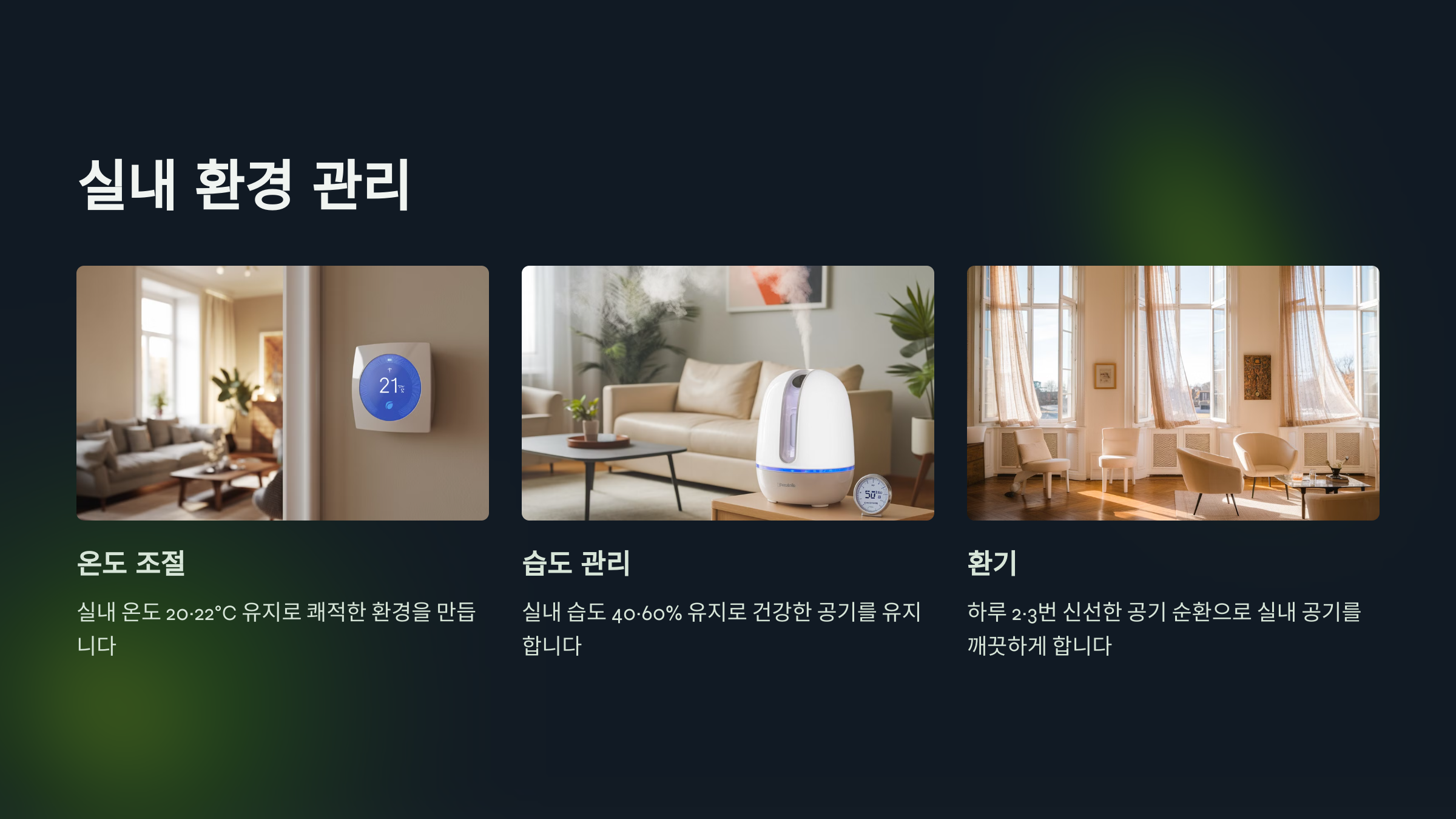 6. 🌬️ 실내 환경 관리: 온도와 습도를 적절히 유지