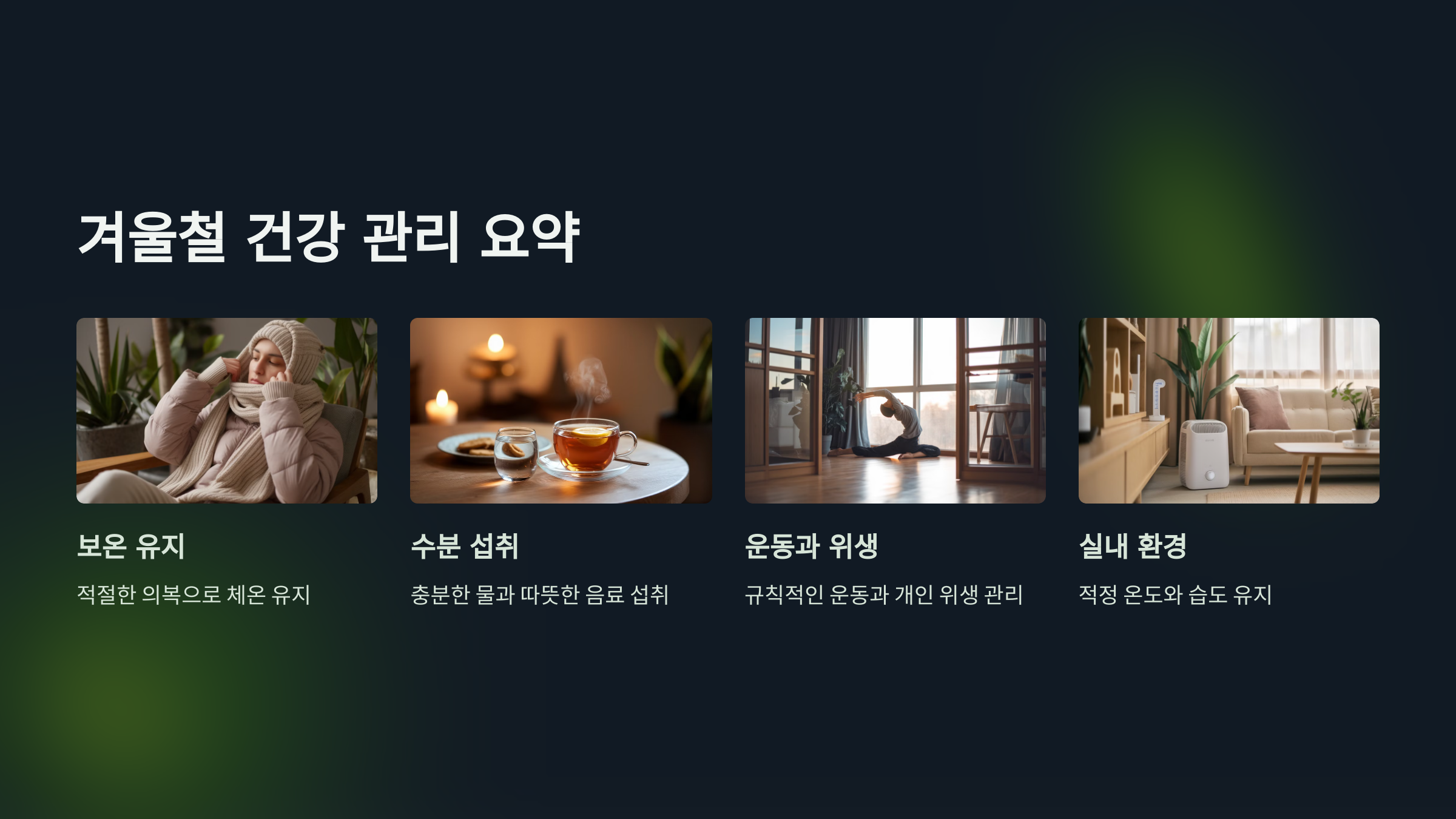겨울철 건강 관리는 꾸준한 습관에서 시작됩니다. 오늘 소개한 추운 날씨 건강 주의사항을 기억하고 하나씩 실천해 보세요.