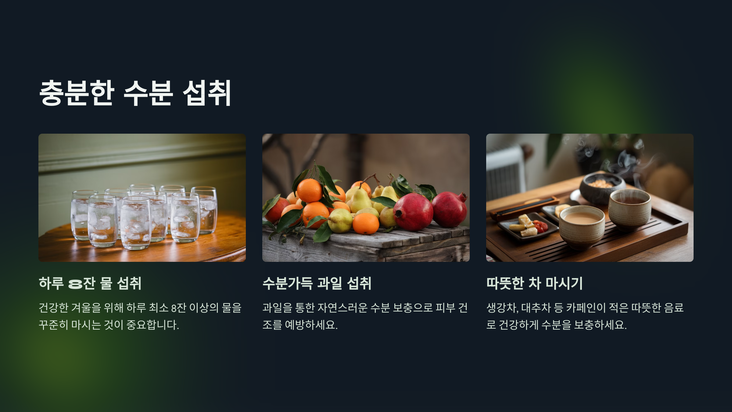 3. 💧 충분한 수분 섭취: 겨울에도 수분은 필수