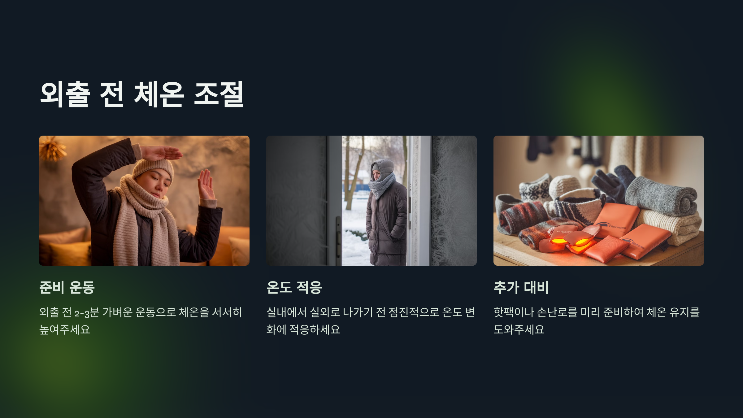 2. ❄️ 외출 전 체온 조절: 너무 차갑거나 너무 덥게 하지 말 것