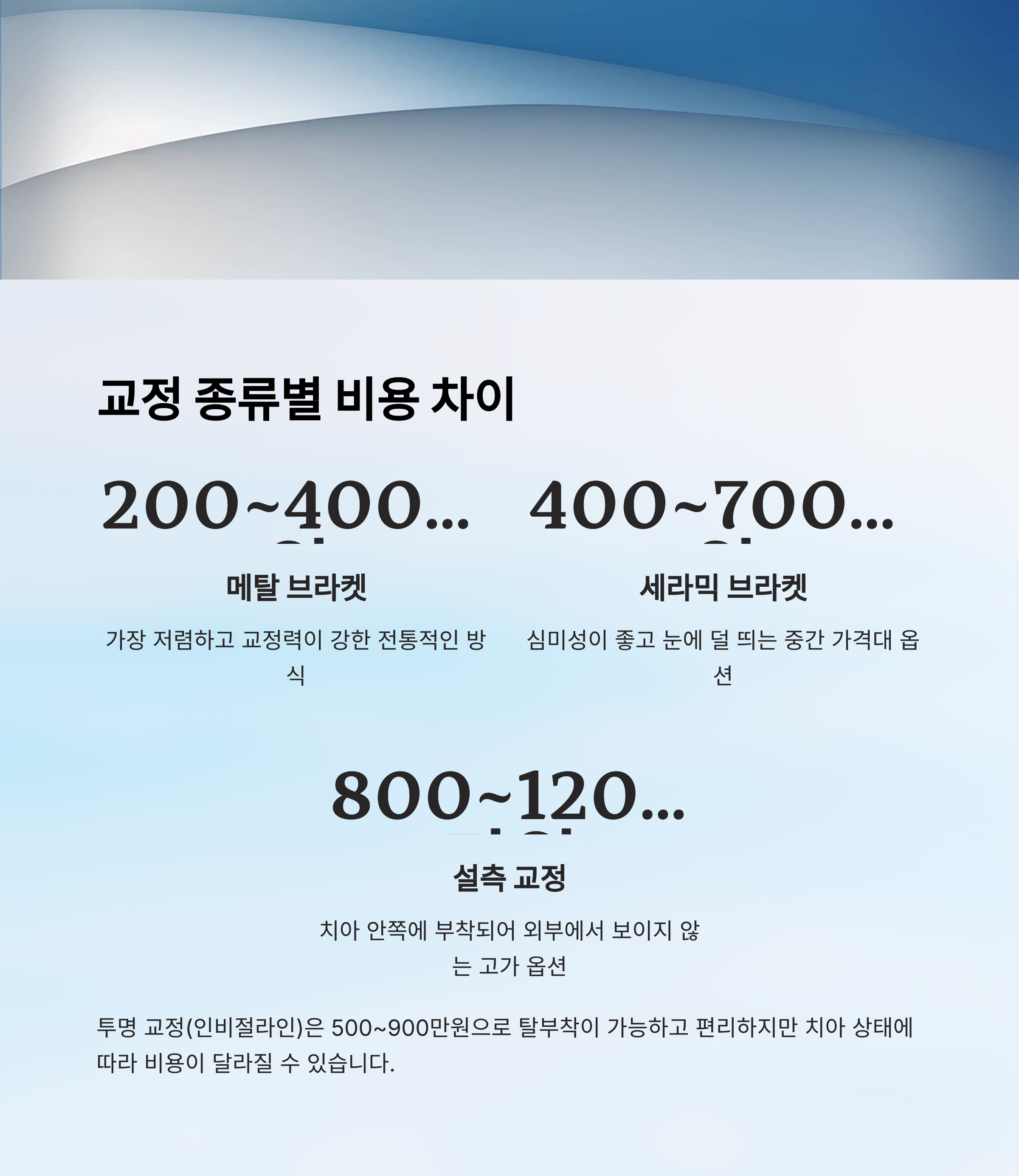 | 메탈 브라켓 | 저렴하고 교정력 강함 | 200~400만 원 | 비용 중시 |