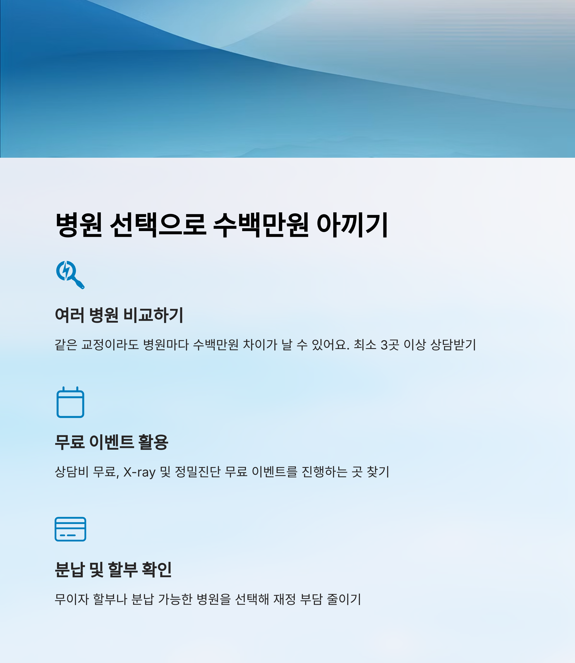 치아교정 비용을 아끼는 가장 큰 핵심 중 하나는 바로 병원 선택이에요. 같은 교정이라도 병원마다 수백만 원 차이 날 수 있다는 사실, 알고 계셨나요?