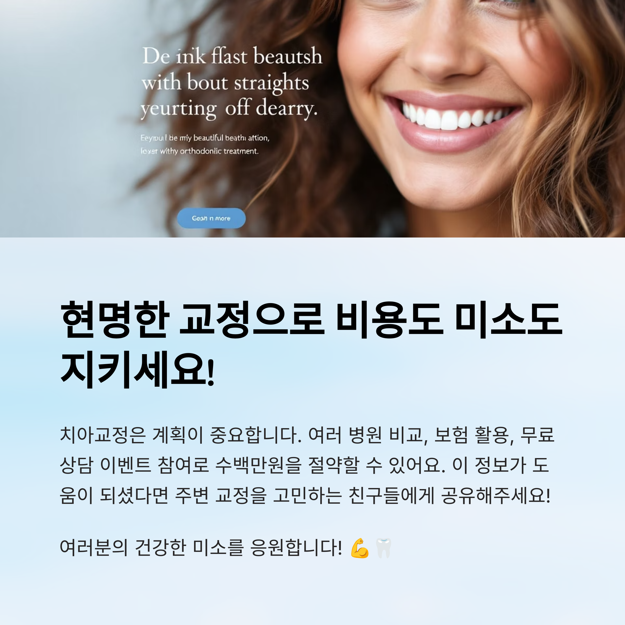 치아교정은 단순히 예쁜 미소를 위한 것이 아니라, 건강한 치열과 턱의 기능을 위한 치료예요. 하지만 비용이 만만치 않아서 많은 분들이 고민하게 되죠. 오늘은 치아교정을 조금이라도 저렴하게, 똑똑하게 할 수 있는 방법들을 정리해 볼게요. 💡