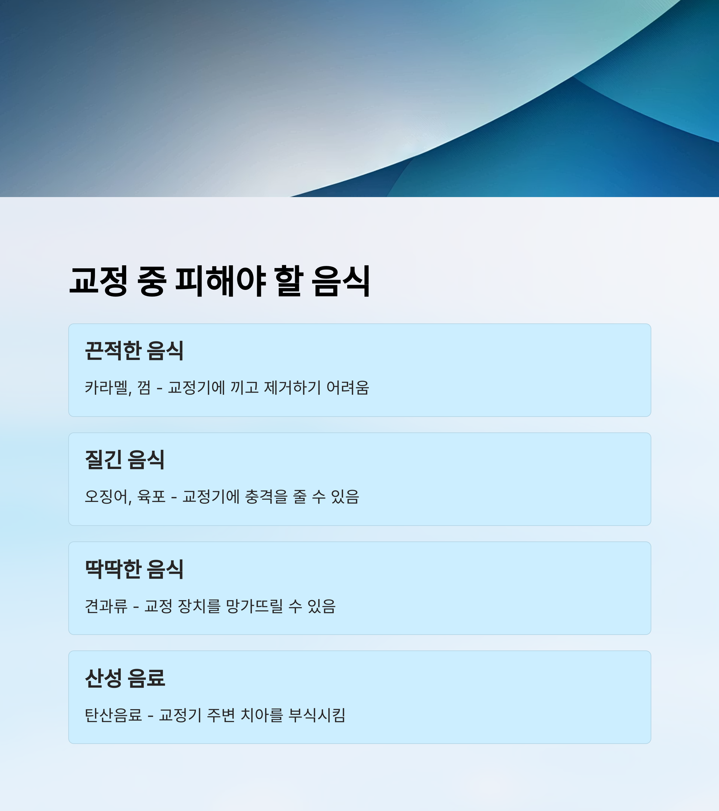| 탄산음료 | 산성 성분이 교정기 주변 치아를 부식시킴 |