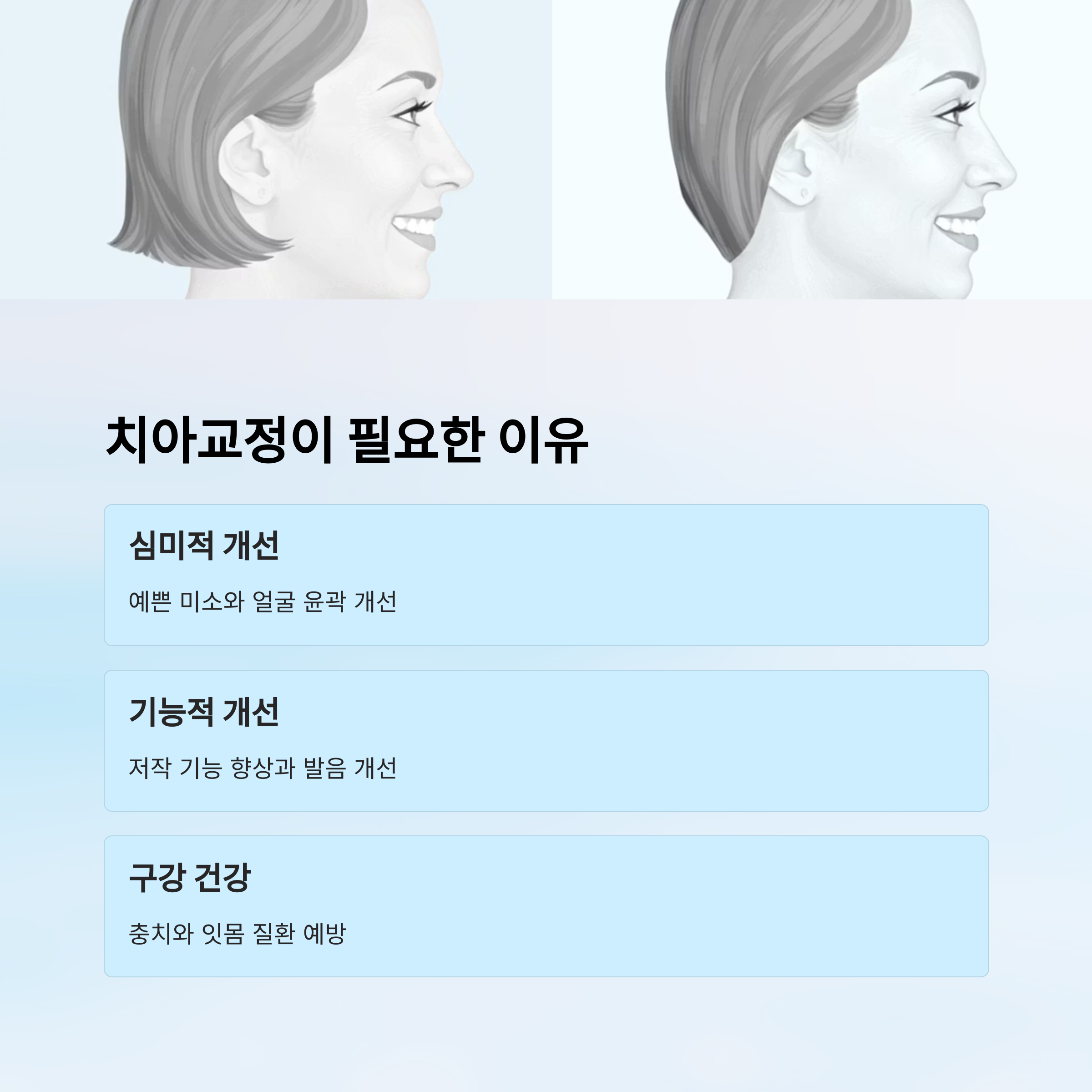 단순히 '예쁜 치아'를 만들기 위한 것이 아니라, 부정교합 개선과 잇몸 건강을 위해서도 중요해요. 부정교합이 심하면 음식물을 제대로 씹기 어렵고, 잇몸 질환이나 충치가 생길 가능성이 높아지거든요! 🦷