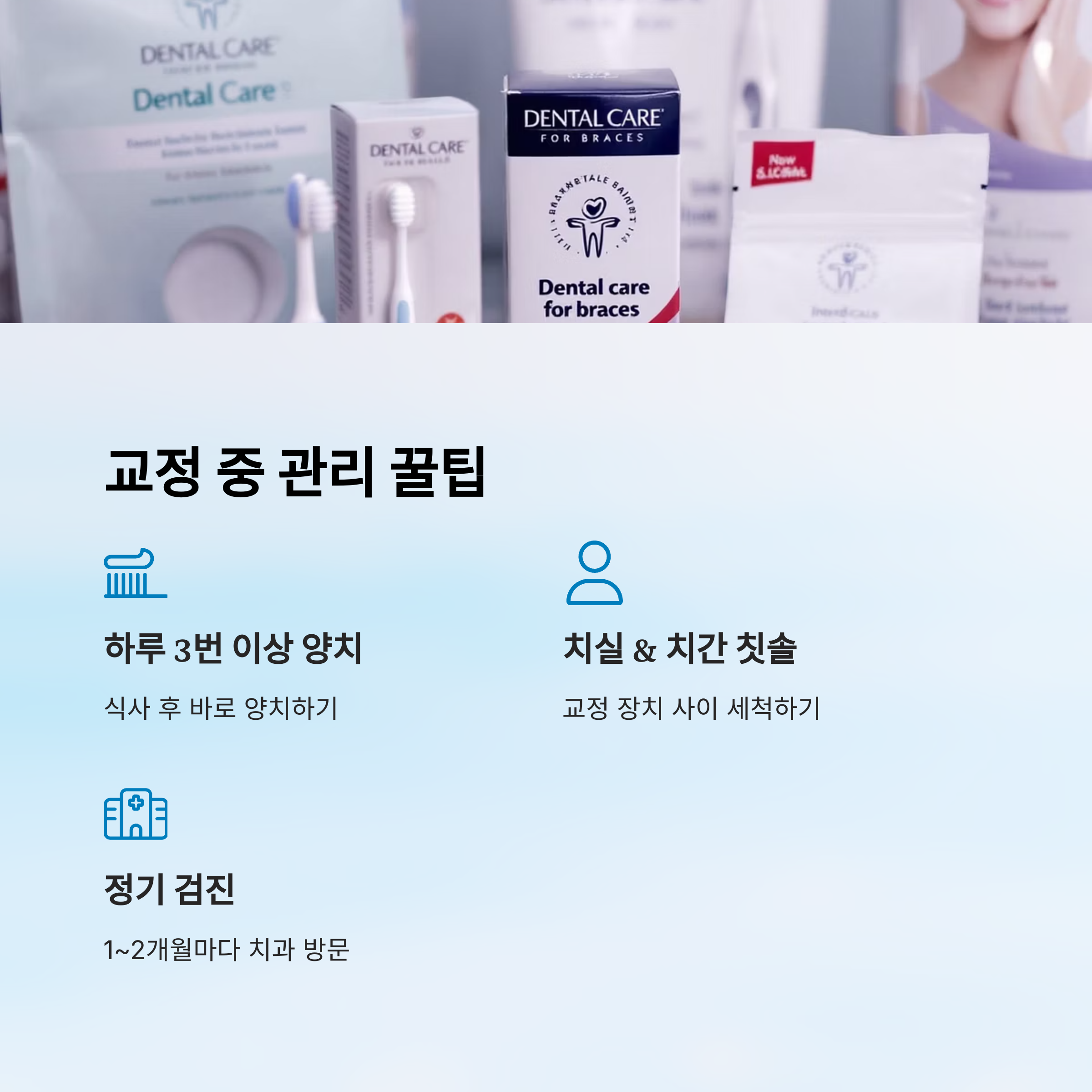 - 🦷 치실 & 치간 칫솔 사용 (교정 장치 사이 깨끗하게 세척)