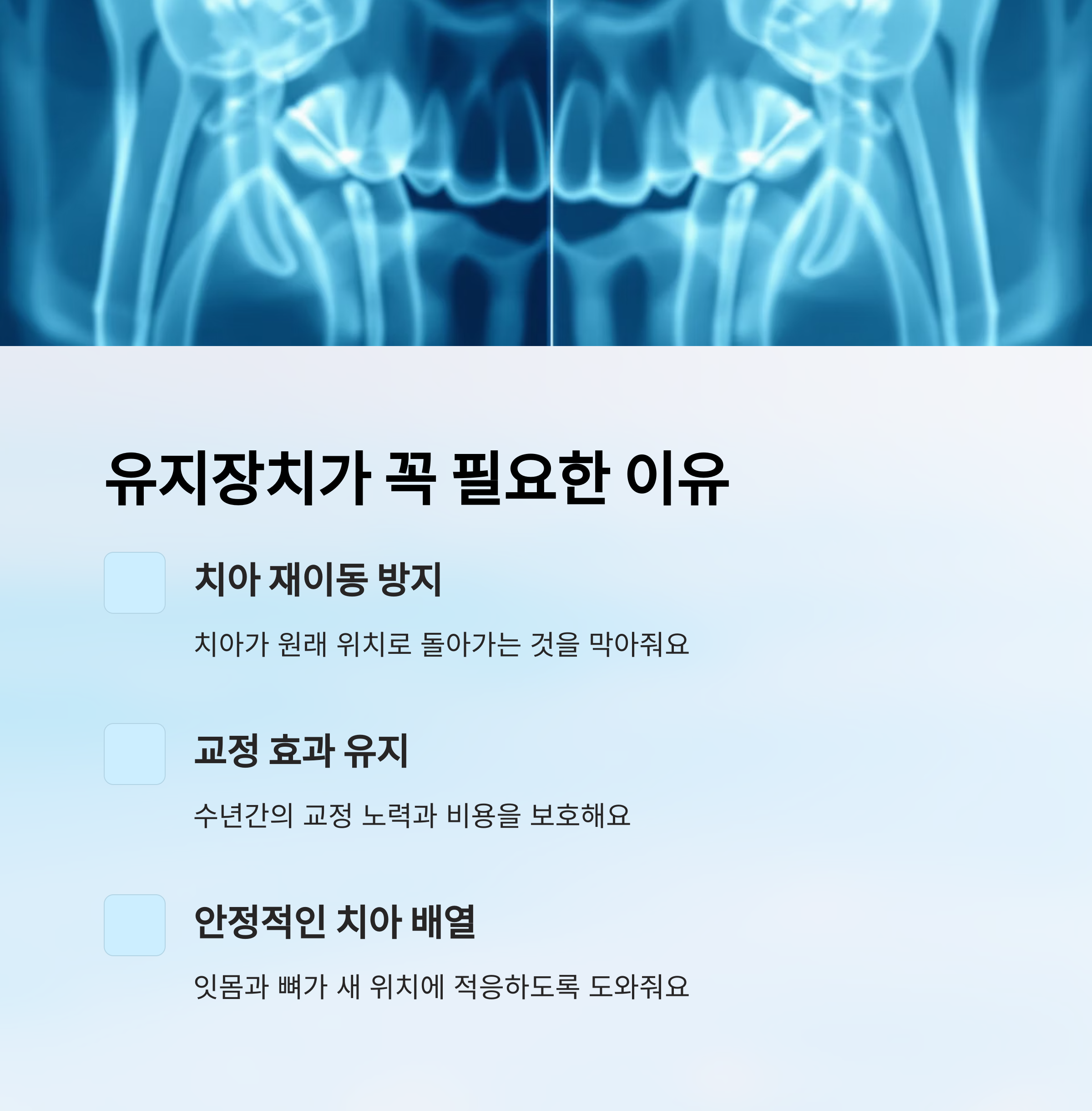 - 🦷 교정 후 안정적인 치아 배열 유지