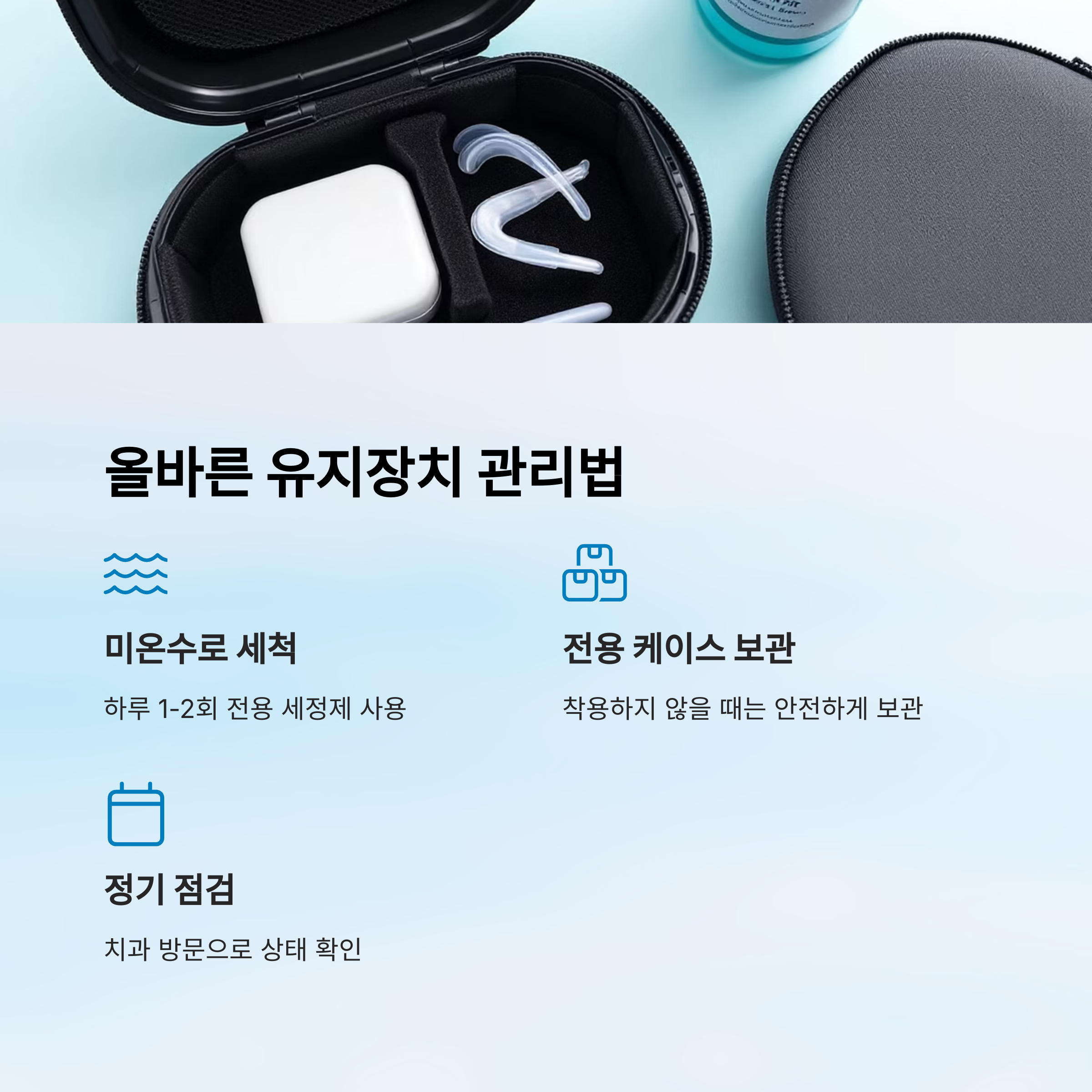 - 🦷 유지장치를 착용하지 않을 때는 전용 케이스에 보관