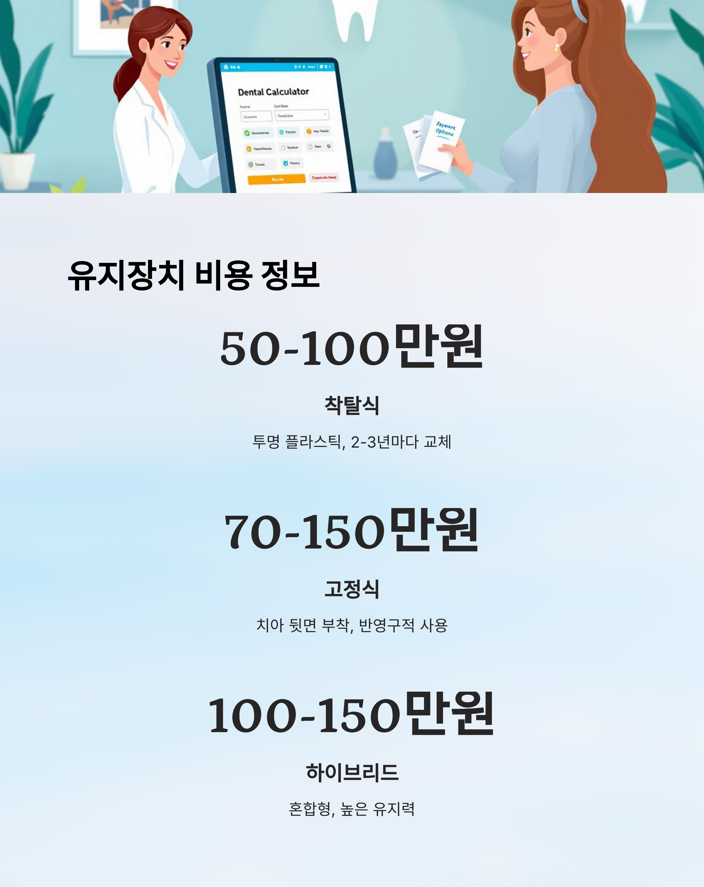 | 착탈식 유지장치 | 50~100만 원 | 투명 플라스틱, 교체 주기 필요 |