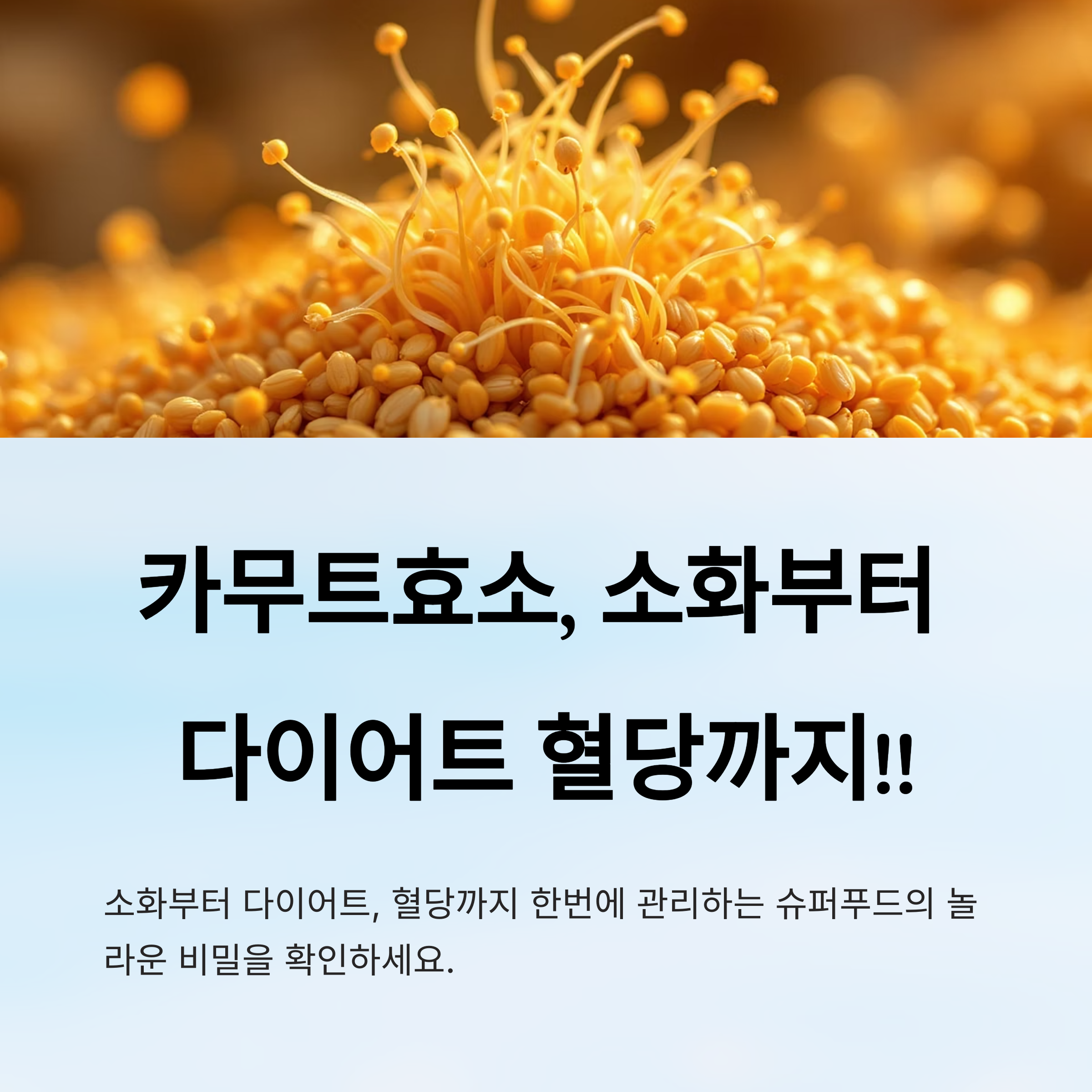 이처럼 카무트효소는 식사 후 혈당이 급격하게 오르는 걸 막아줘서 에너지 대사는 물론, 체중 관리와 당뇨 예방까지 도와주는 든든한 파트너예요. 평소에 당이 잘 오르거나 피곤함이 심한 사람에게 특히 추천하고 싶어요 🍚