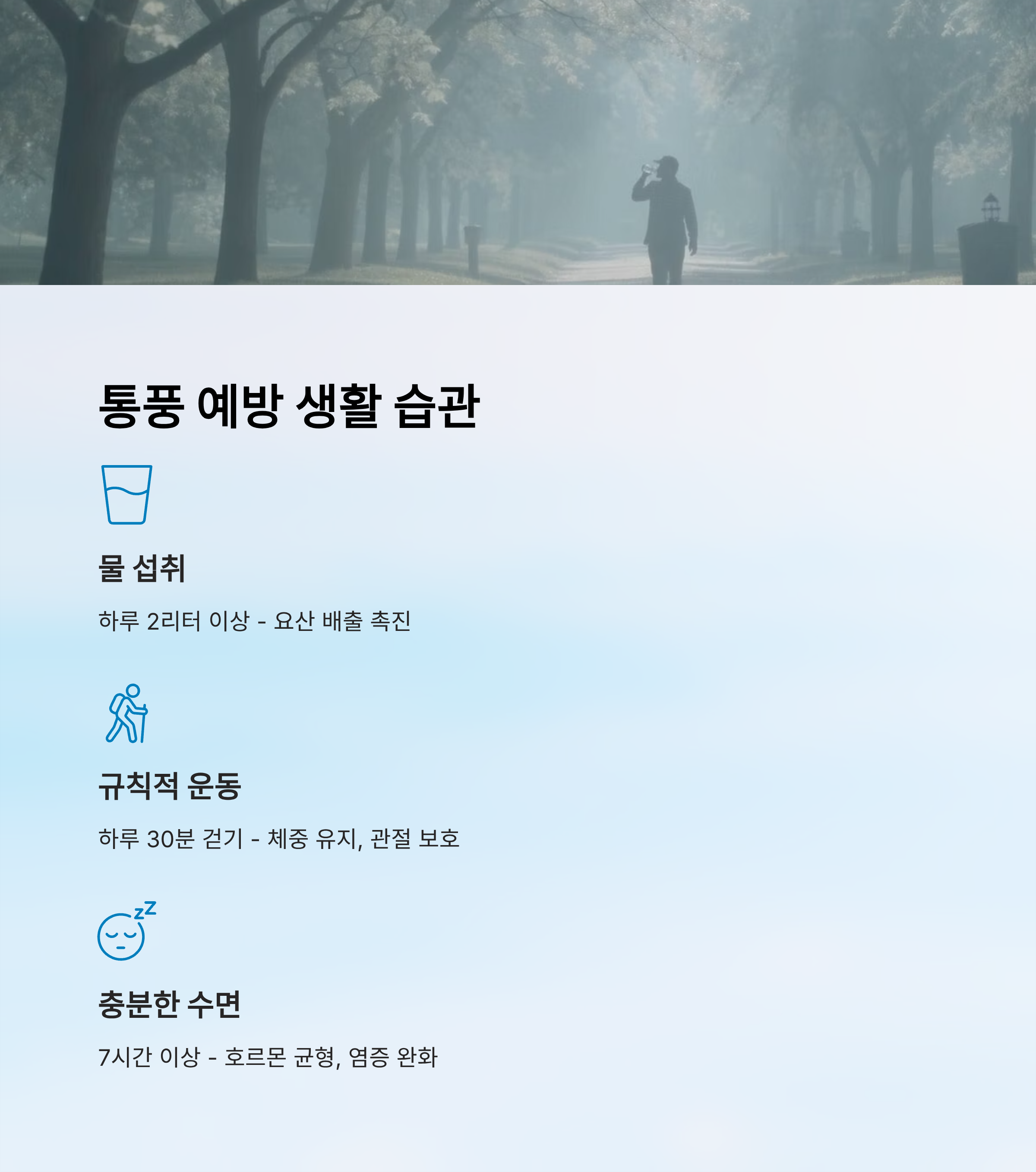 내가 생각했을 때 가장 중요한 건 결국 “꾸준함”이에요. 물을 자주 마시고, 음주를 자제하고, 가볍게 운동하는 습관을 매일 실천하는 게 통풍 발작을 막는 최고의 예방법이라고 느껴져요. 이런 작은 습관들이 모여 몸을 건강하게 지켜줘요. 🌟