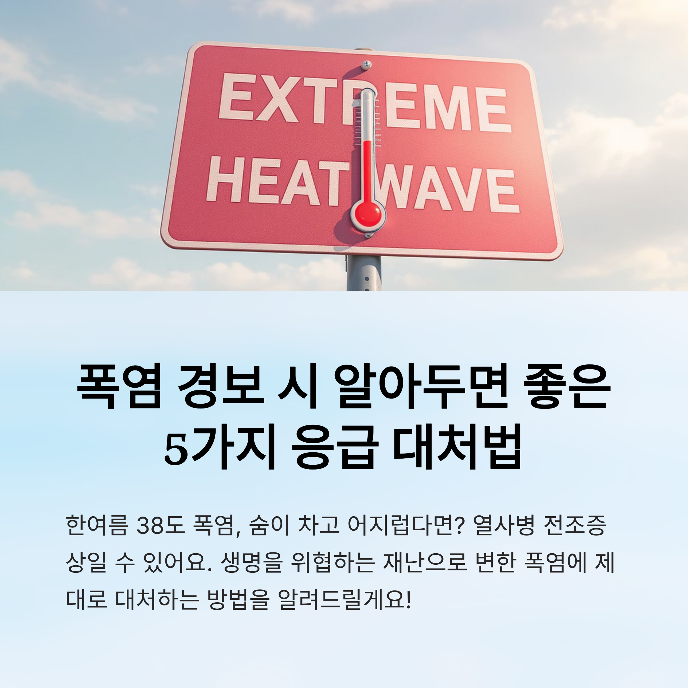 🔥 한여름, 한낮 온도가 38도에 육박한다면 당신의 몸은 신호를 보내기 시작해요. 숨이 차고, 어지럽고, 땀이 갑자기 멈춘다면? 바로 열사병의 전조증상이죠! 폭염은 더 이상 단순한 '더운 날씨'가 아니에요. 이제는 생명을 위협할 수 있는 '재난'으로 받아들여야 해요.