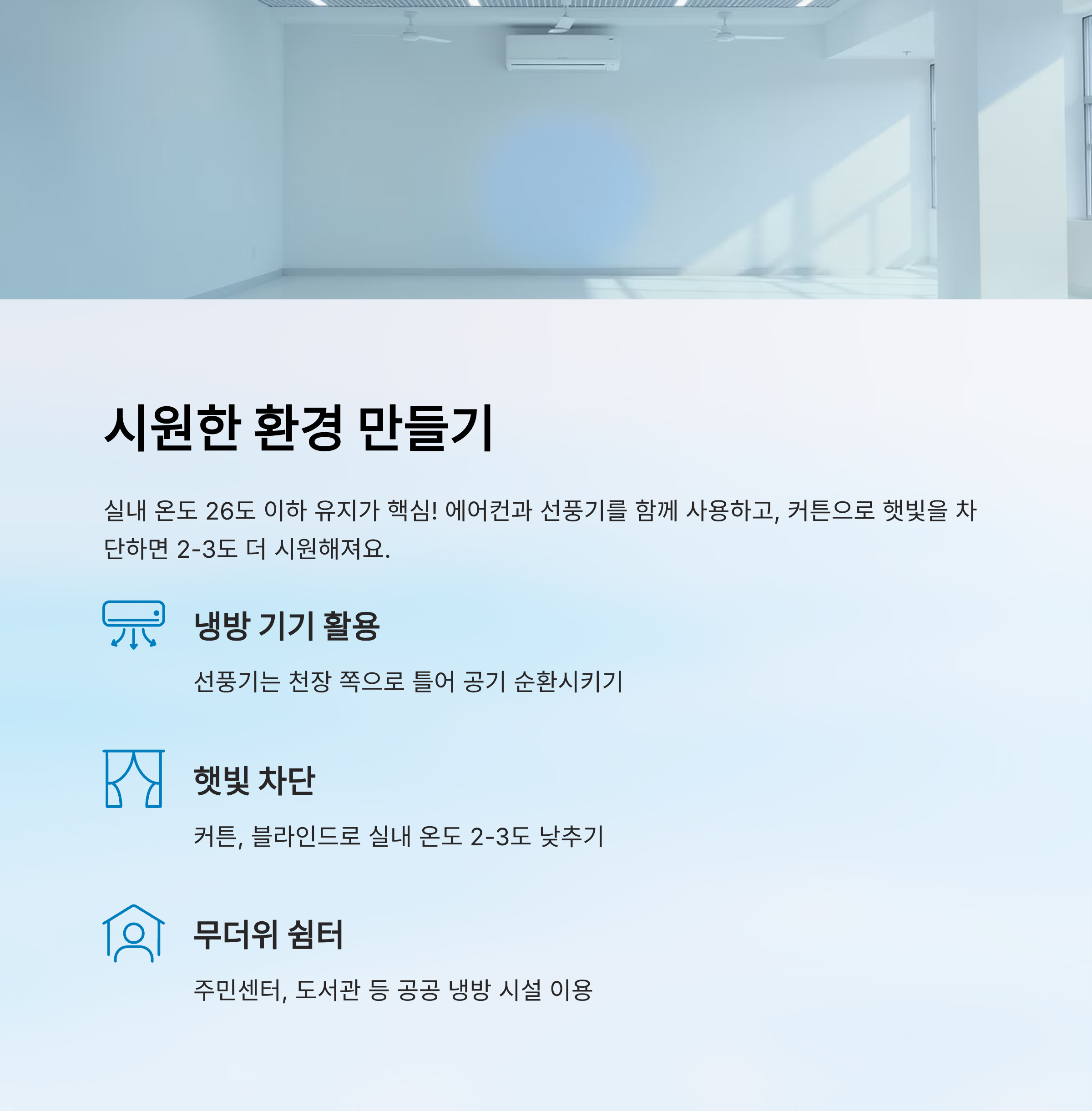 ❄️ 1. 시원한 환경 만들기