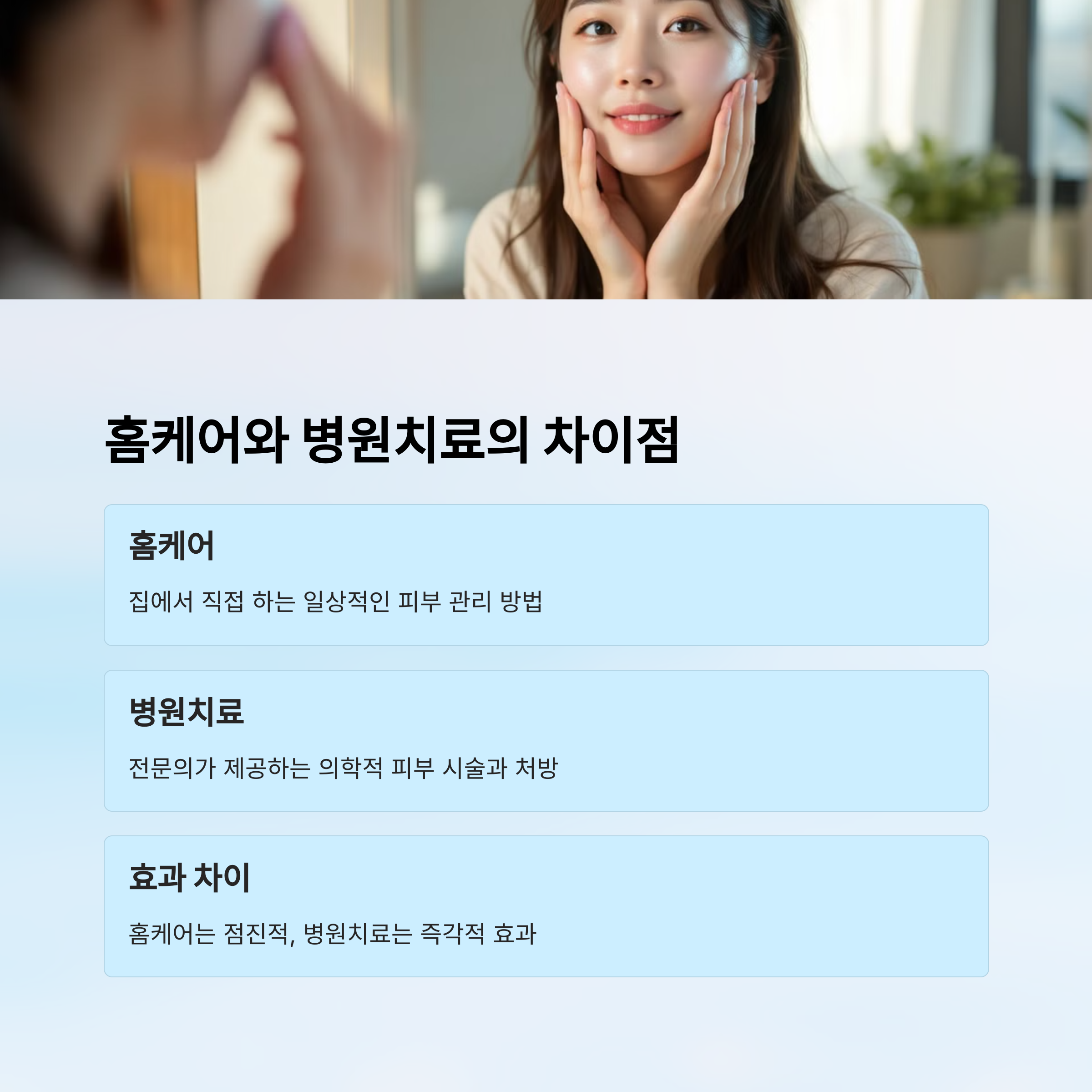 오늘은 피부과 치료와 홈케어의 정확한 차이를 정리해서 알려드릴게요. 내 피부 상태에 맞는 선택을 할 수 있게 도와줄게요!