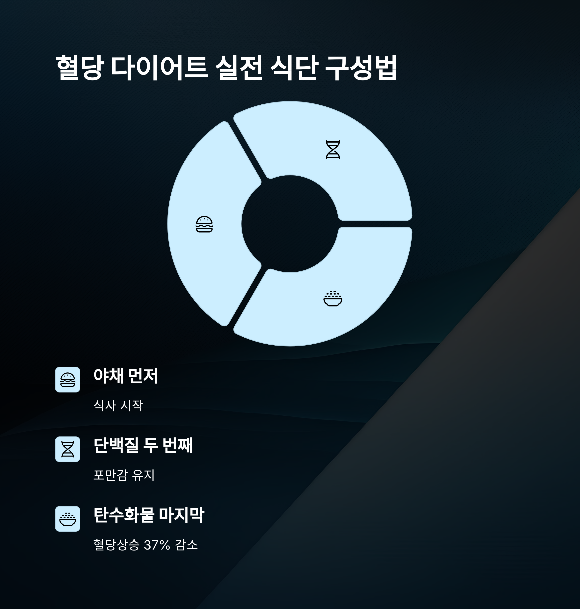 식사 순서도 중요해요. 채소 → 단백질 → 탄수화물 순서로 먹으면 혈당이 천천히 오르면서 인슐린 분비를 조절하는 데 도움이 돼요.
